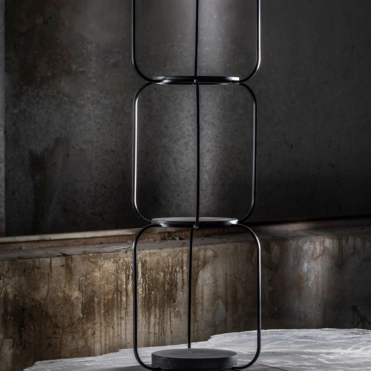 Parte della collezione Tarsie Geometriche, questa libreria è un capolavoro scultoreo. Verniciata con una polvere nera opaca, la struttura lineare in ferro crea una silhouette di grande impatto con quattro piani neri in pietra vulcanica con finitura levigata, incorporati nella struttura metallica tridimensionale, dando vita a un oggetto dinamico dal design funzionale.