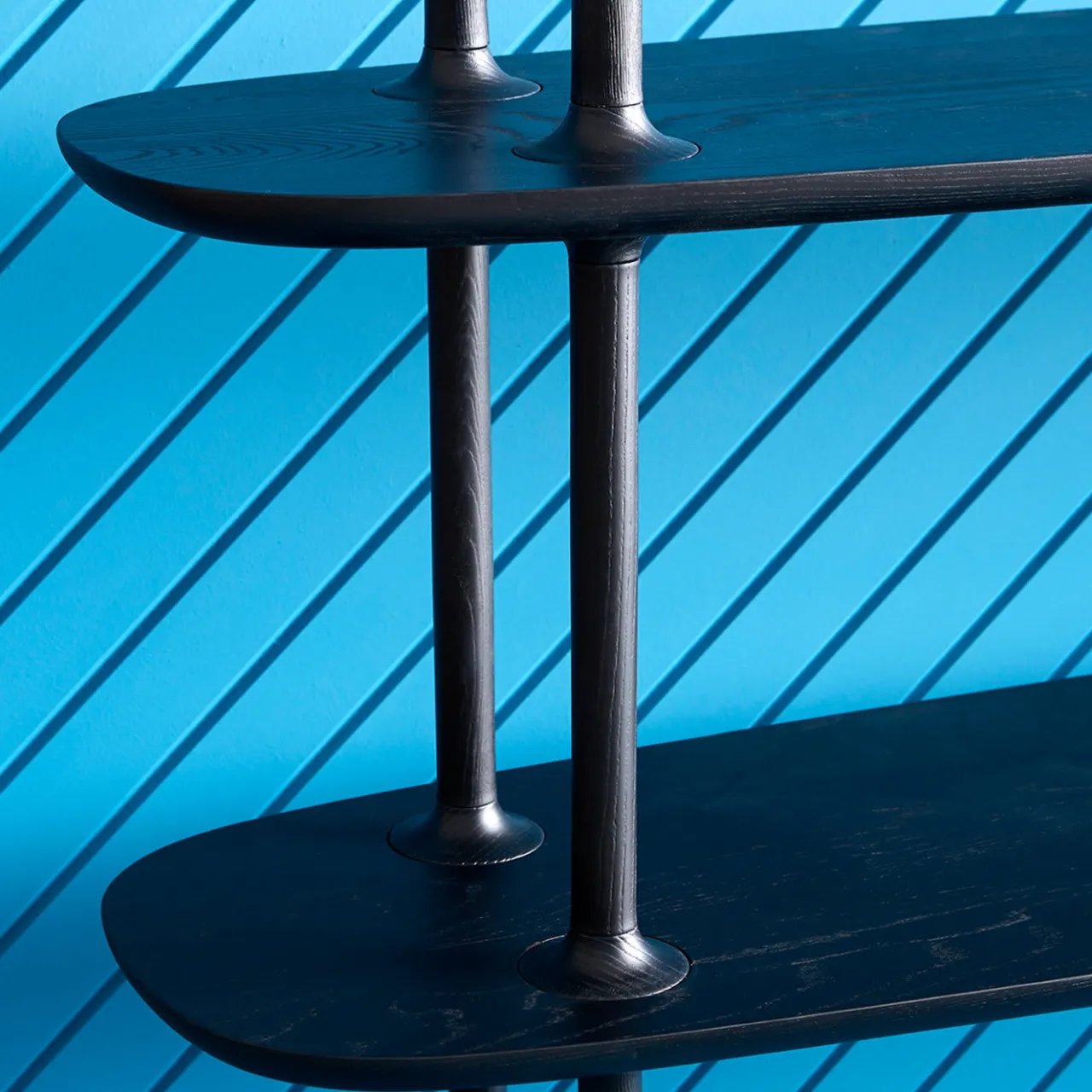 Definita da linee morbide e leggerezza visiva, la libreria Bones è accuratamente realizzata in legno massiccio con una finitura laccata lucida cerulea che crea un superbo impatto visivo in una casa o un ufficio moderni. Quattro ripiani oblunghi creano uno spazio simmetrico per esporre libri, piante e oggetti da collezione, separati da sottili montanti che possono essere facilmente staccati per creare diverse altezze, adattandosi a specifiche configurazioni della stanza. Disponibile anche in legno tinto e MDF laccato.