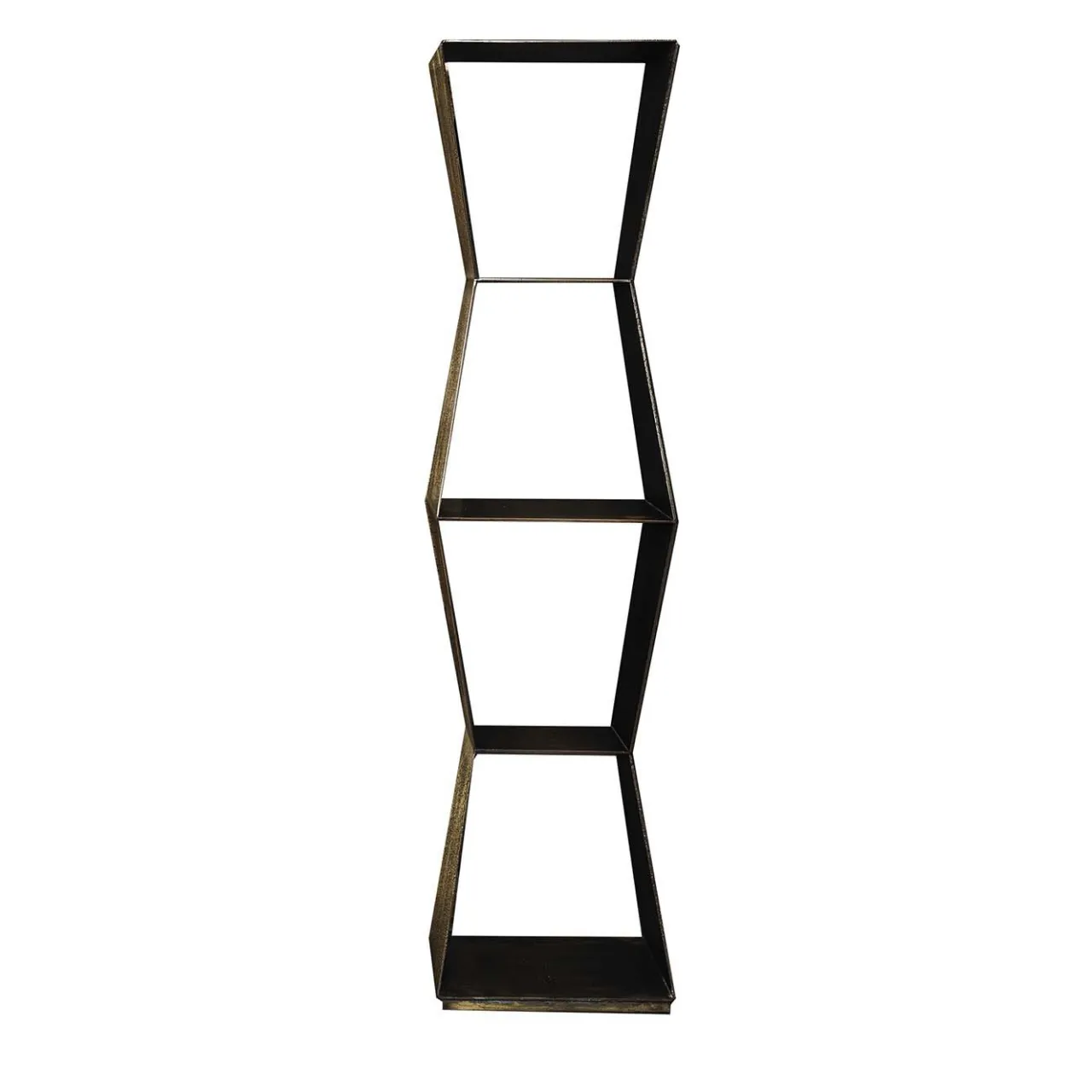 Perfettamente abbinabile alla libreria alta Tula o al tavolino Tula, questo raffinato pezzo è una piccola libreria con quattro ripiani e una sorprendente silhouette geometrica che si erge verticalmente in modo autoportante. Realizzato in metallo, il pezzo è rifinito con un rivestimento galvanico in bronzo eroso, che presenta sfumature uniche e raffinate.