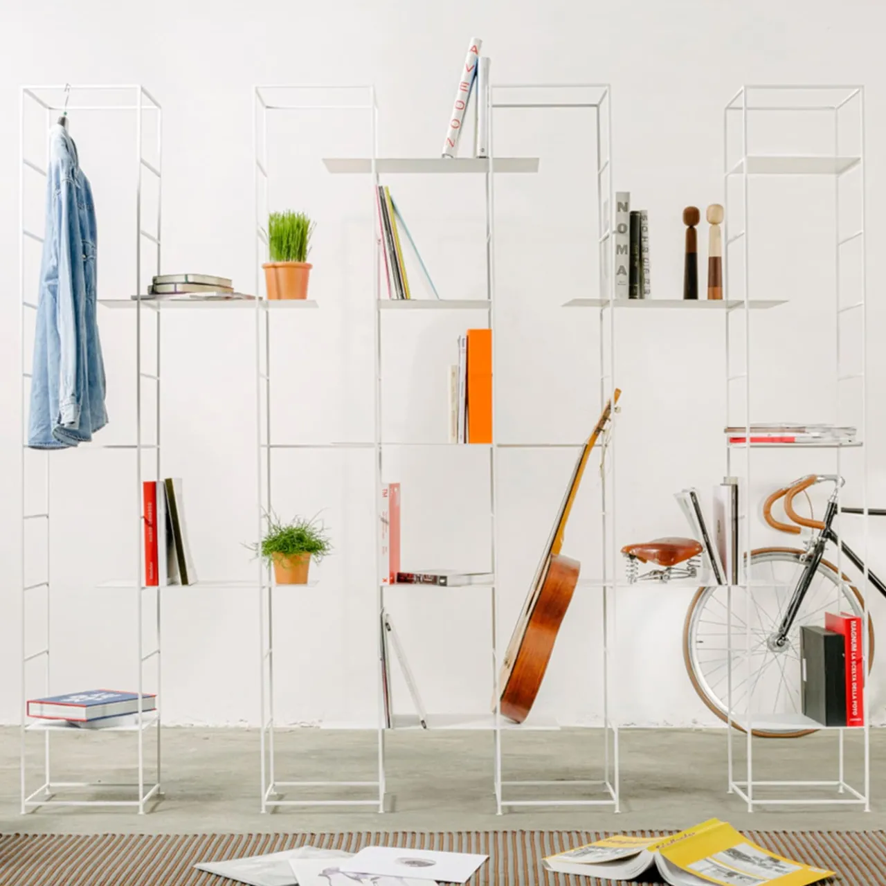 Questa libreria combina perfettamente forza e semplicità. Con quattro robuste colonne e una serie di configurazioni di ripiani, si adatta a diverse disposizioni della stanza, perfetta per mettere in risalto libri o oggetti decorativi. La struttura in ferro garantisce la durata nel tempo, mantenendo un aspetto elegante e raffinato. Il design modulare invita alla personalizzazione, aggiungendo un tocco di fascino contemporaneo a interni diversi. Per le specifiche tecniche, contattare il Concierge.