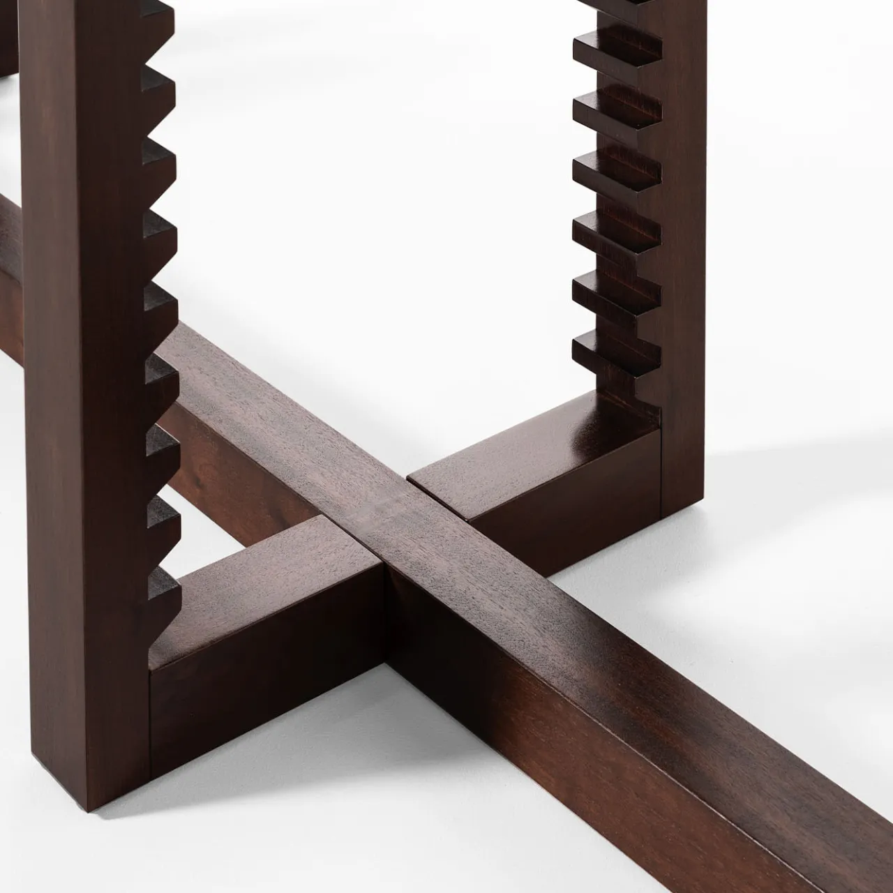 La libreria modulare Ritmica di Storagemilano è caratterizzata da un design bifacciale con ripiani regolabili sostenuti da un meccanismo a cremagliera realizzato in noce massiccio con un’anima metallica rinforzata per una maggiore stabilità. I ripiani sono in legno di noce tinto scuro con piani laccati lucidi in verde, facilmente smontabili e riposizionabili per configurazioni personalizzabili. Le finiture raffinate e il design pratico permettono di adattarsi perfettamente a diversi spazi abitativi e professionali.