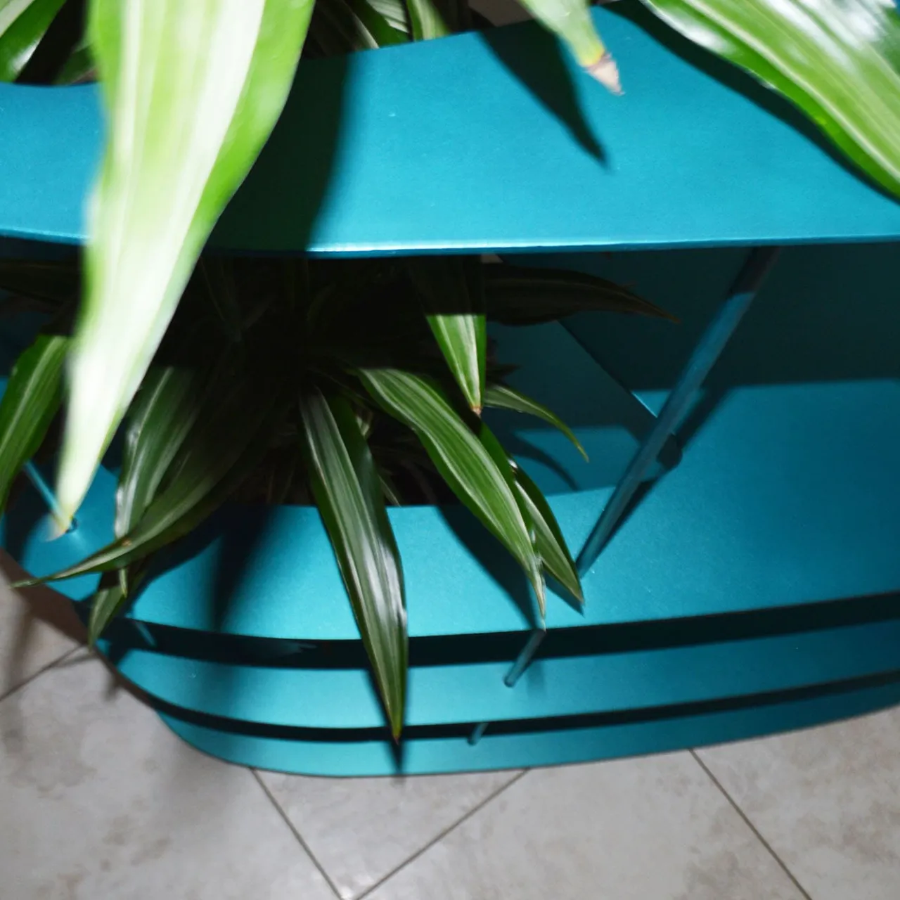Oasi è una splendida credenza in alluminio dal design tanto deciso quanto lineare. Caratterizzata da volumi slanciati in finitura blu acqua, i ripiani a goccia con ritagli irregolari sono disposti su quattro livelli, sostenuti da quattro sottili aste. Un cilindro metallico si estende verso l’alto sul ripiano inferiore; le superfici e i volumi irregolari lasciano spazio alla vita, proprio come in un’oasi naturale. Contattare il Concierge per le opzioni di personalizzazione.