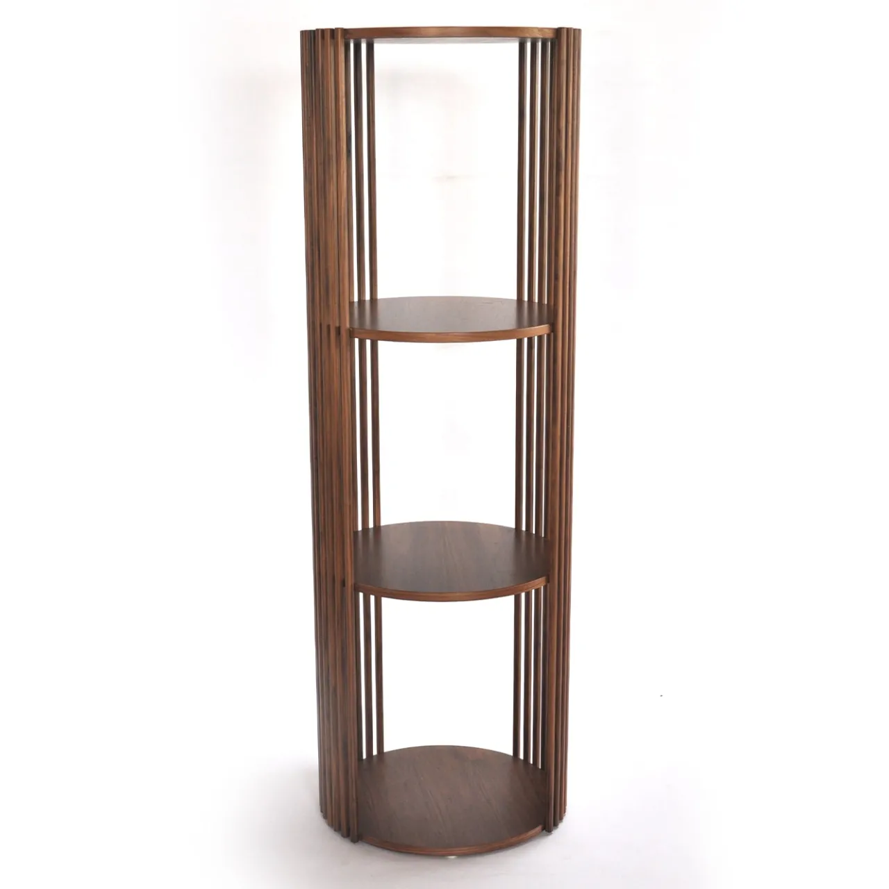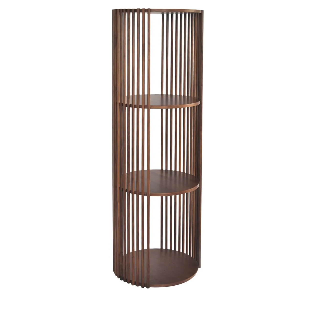 Un intrigante gioco di equilibri, questa splendida libreria o étagère sarà un’aggiunta maestosa e accattivante a un interno contemporaneo. Presenta quattro ripiani rotondi in legno impiallacciato noce canaletto, sostenuti da sottili ma robuste doghe in legno massiccio. Su richiesta, è disponibile anche in legno di rovere o laccato; per dettagli e variazioni di prezzo, rivolgersi al Concierge.