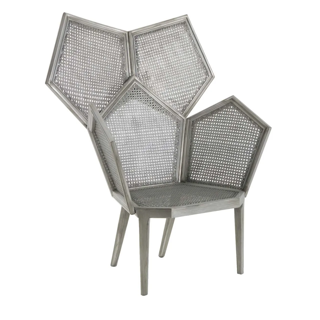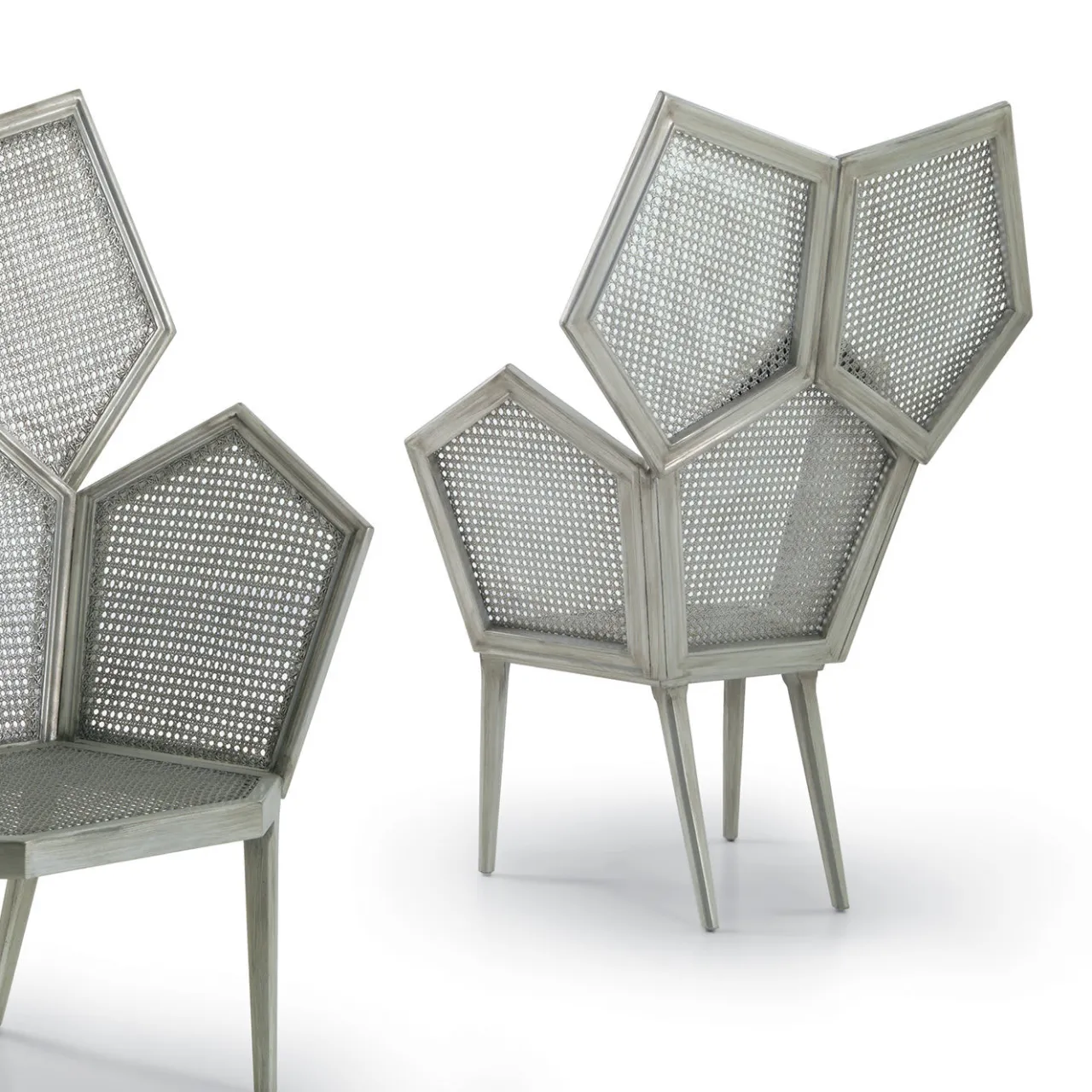Scoprite il fascino di Lui 5A di Philippe Bestenheider, una moderna interpretazione di una classica sedia in legno di Fratelli Boffi. Ispirata al design dei primi del ‘900, questa sedia abbraccia le sedute in doppia paglia di Vienna con un tocco futuristico. La forma pentagonale è al centro della scena, creando un’armoniosa fusione di tradizione ed estetica contemporanea. Rivestita in lussuosa foglia di piombo, Lui 5A è una testimonianza di fedele artigianalità e raffinatezza senza tempo.