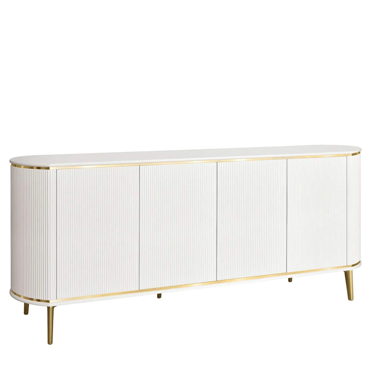 Questa elegante credenza a 4 ante presenta una sorprendente texture canneté, abbinata a una finitura bianca e a profili e gambe in metallo dorato. Il design raffinato incorpora meccanismi di spinta e di estrazione, che assicurano un accesso agevole agli spaziosi interni. Questa credenza, che offre sia un’archiviazione funzionale che un fascino estetico, fonde perfettamente la raffinatezza moderna con la praticità, dando un tocco di carattere e personalità a qualsiasi interno.