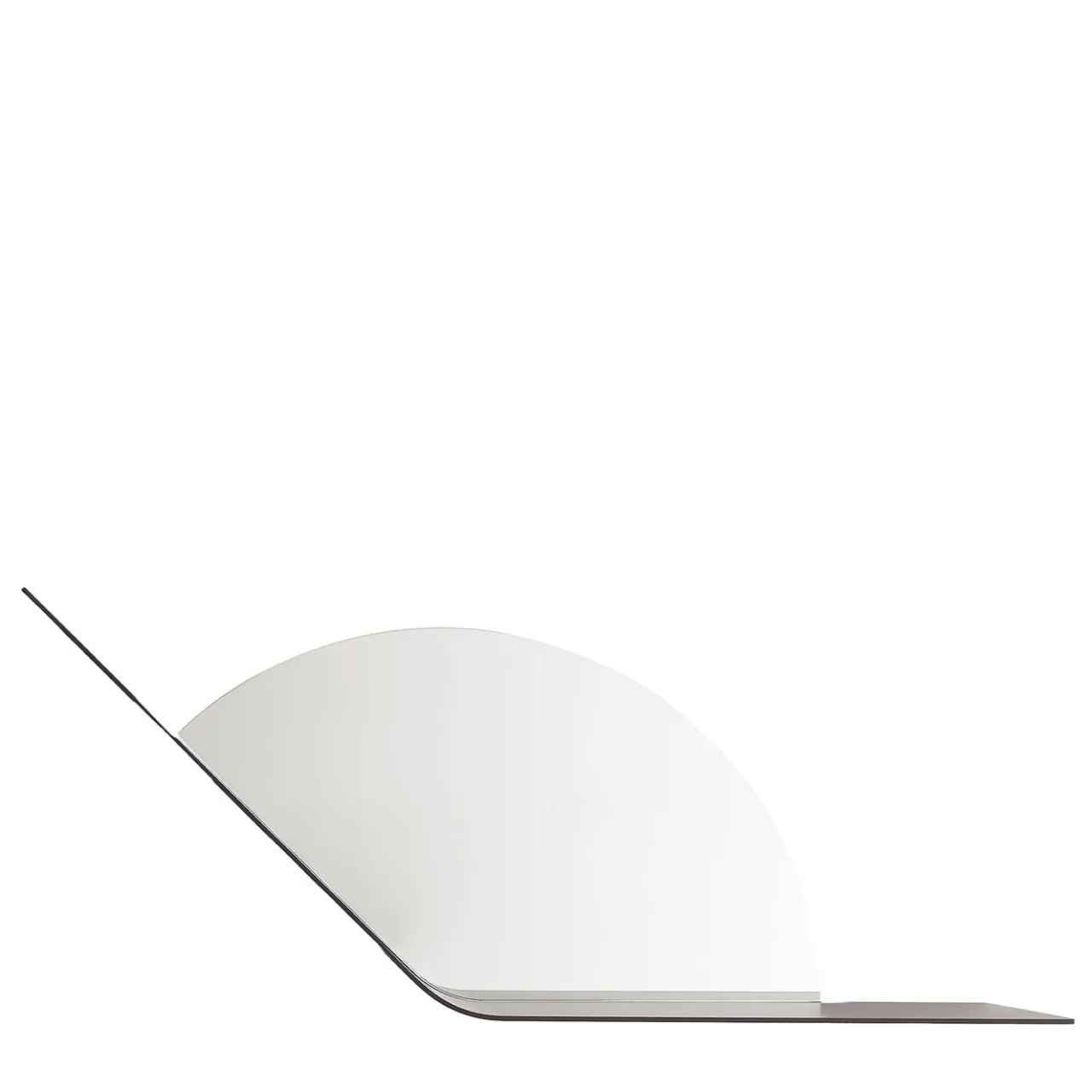 Una silhouette essenziale che non rinuncia a un’ispirazione giocosa contraddistingue questa mensola, realizzata in metallo e che ricorda il corpo stilizzato di una lumaca. Proposta in una raffinata finitura champagne ottenuta con vernici epossidiche, la struttura arrotolata dall’aspetto angolare e la porzione specchiata semicircolare a parete suggeriscono un’esposizione dinamica di libri o vasi.