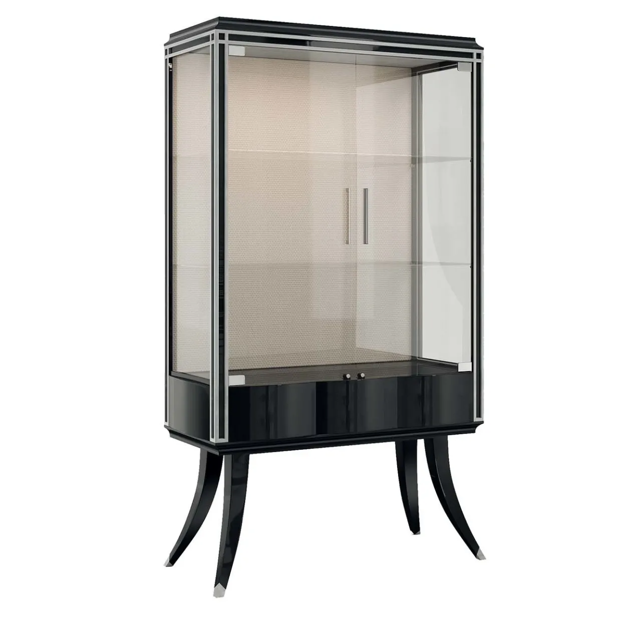 Questo spettacolare mobile è dotato di 2 ante e 1 cassetto con chiusura push pull, vetri temperati e luci a led. Realizzato in palissandro santos, il design accattivante dell’intera nuova Collezione Oscar si adatta a qualsiasi ambiente dal sapore contemporaneo e cosmopolita. La splendida finitura lucida con dettagli in foglia d’argento si traduce in un pezzo d’arredamento di eccezionale qualità.