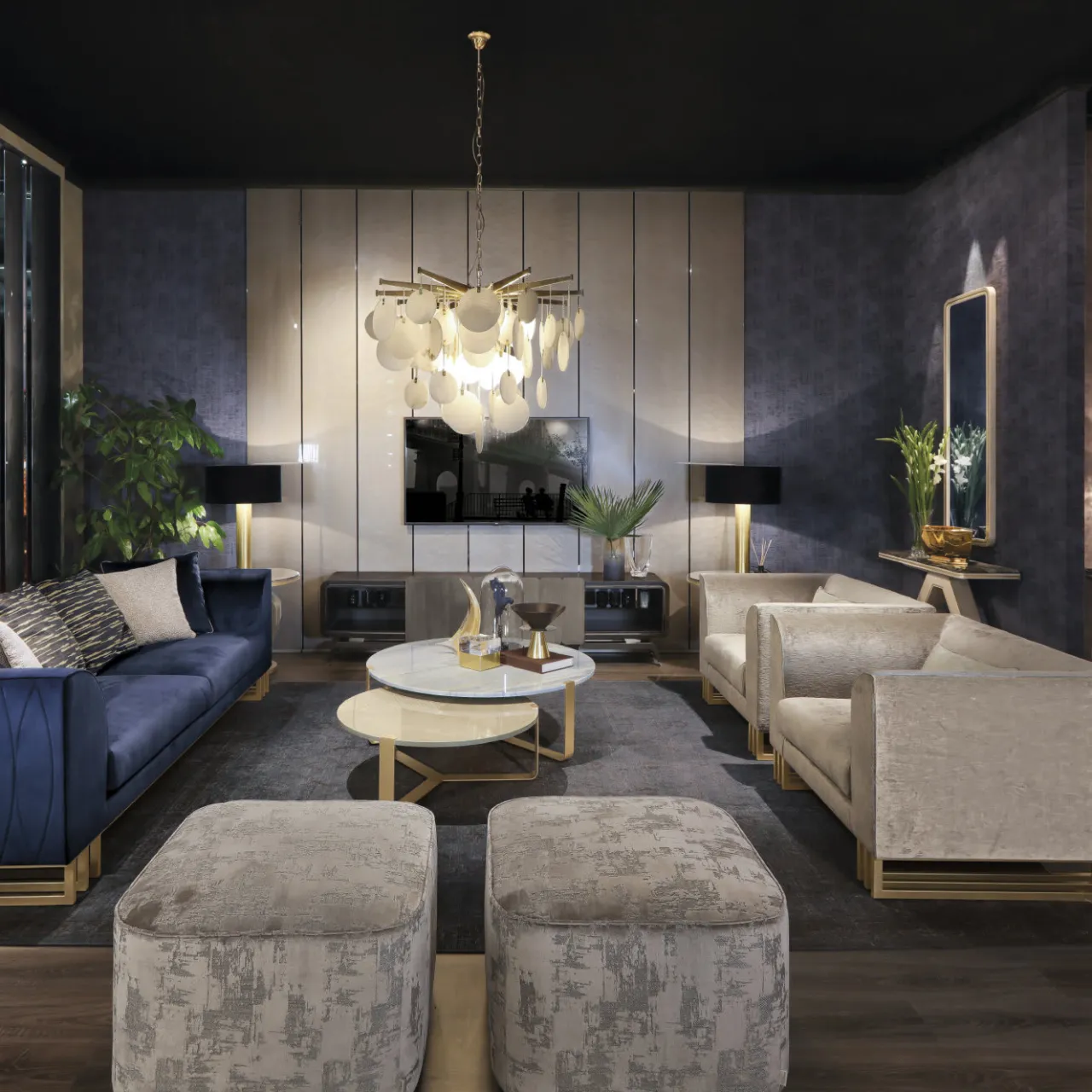 L’unità TV Hanami Soft Style consente di esporre il televisore in uno stile elegante. Il mobile, che poggia su gambe in metallo, è dotato di due ante scorrevoli con chiusura ammortizzata e pannelli in nabuk smussato. Il mobile è completato da un’impiallacciatura a scelta, qui rappresentata in Acero Frisé con finitura laccata opaca Umbra Gray.