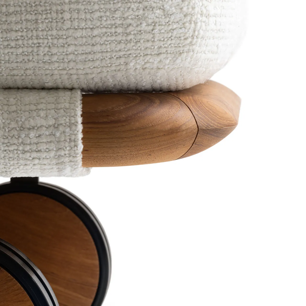 Il lettino prendisole Moorea presenta una strutturs in acciaio inox verniciato Pewter e inserti in legno massello di teak, progettato per resistere agli agenti atmosferici e all’umidità. Include cuscini in gomma drenante per una maggiore durata e comfort. Rivestito con tessuti della collezione open-air, il lettino offre una reclinazione regolabile per un relax versatile e due ruote posteriori per una facile mobilità. Il suo design raffinato è adatto a ambienti esterni di alta classe.