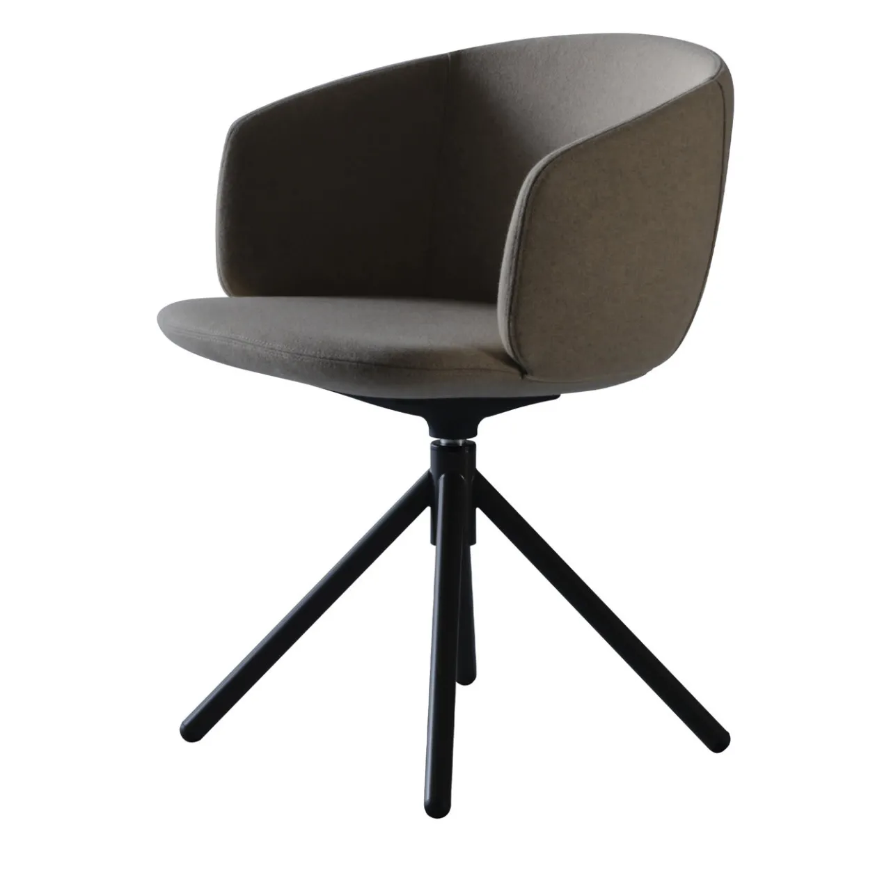 Questa versione più piccola della poltrona da pranzo Not garantisce eleganza, durata e comfort di lusso. Compatta e leggera, la struttura in acciaio è interamente imbottita in poliuretano espanso ad alta densità, per un design confortevole e rilassante, ideale in qualsiasi ambiente della casa o dell’ufficio moderno. Sostenuta da una base girevole a 4 razze in acciaio verniciato nero, il rivestimento in 100% lana vergine è l’esclusivo tessuto Divina MD di Kvadrat, in un versatile e sofisticato colore beige mandorla.