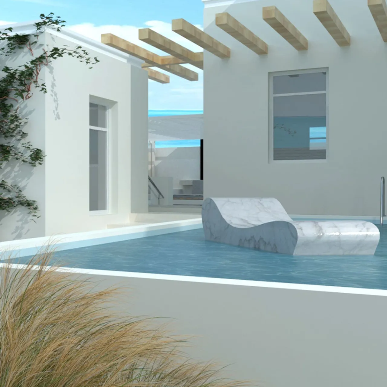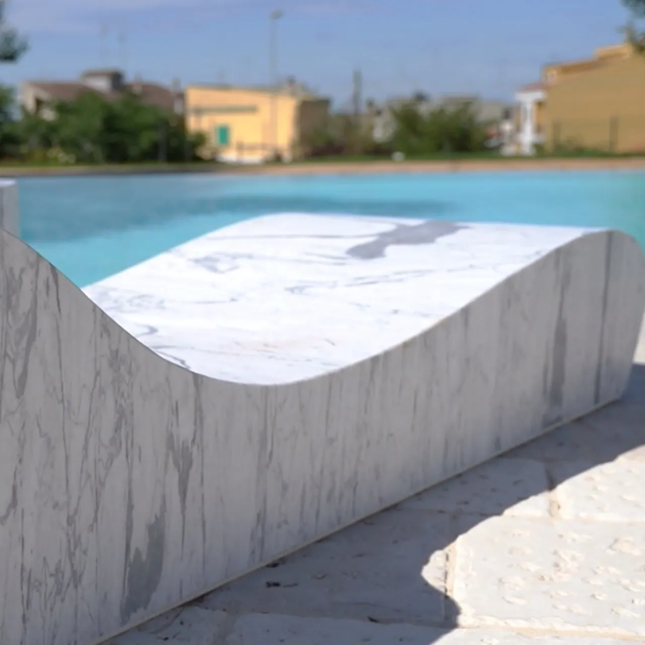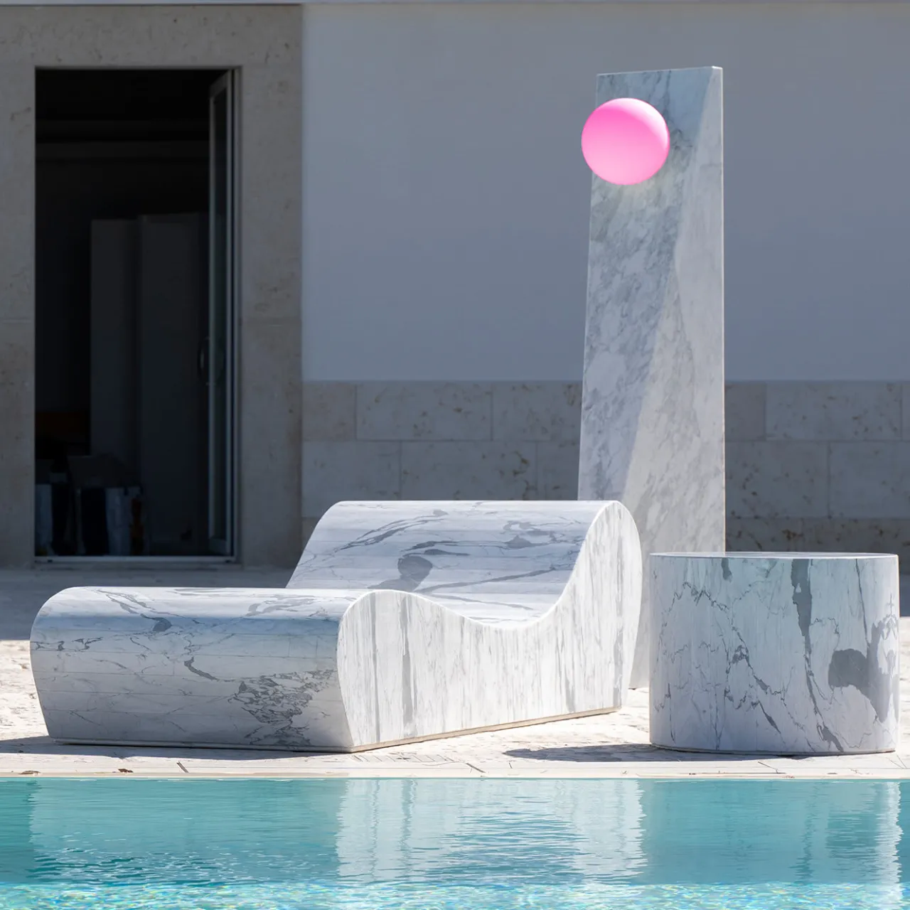Caratterizzata da un profilo seducente, questa chaise longue emana una presenza scultorea controbilanciata dall’inaspettata leggerezza del suo materiale. Il pezzo è realizzato in marmo leggero, che mantiene l’estetica superba della pietra naturale e le conferisce una versatilità senza pari che la rende adatta all’uso in esterni e in interni. Chiedete al Concierge le altre finiture disponibili.