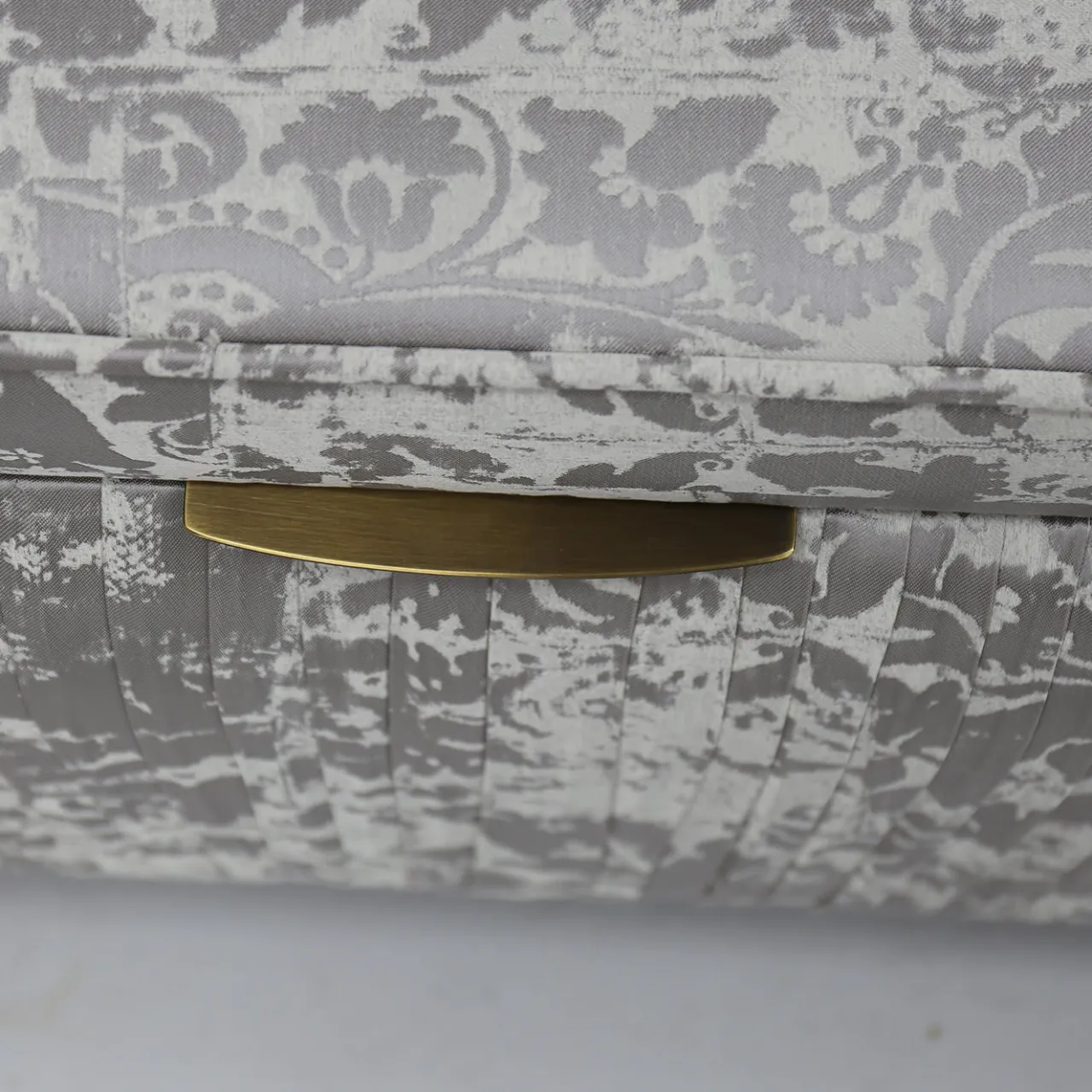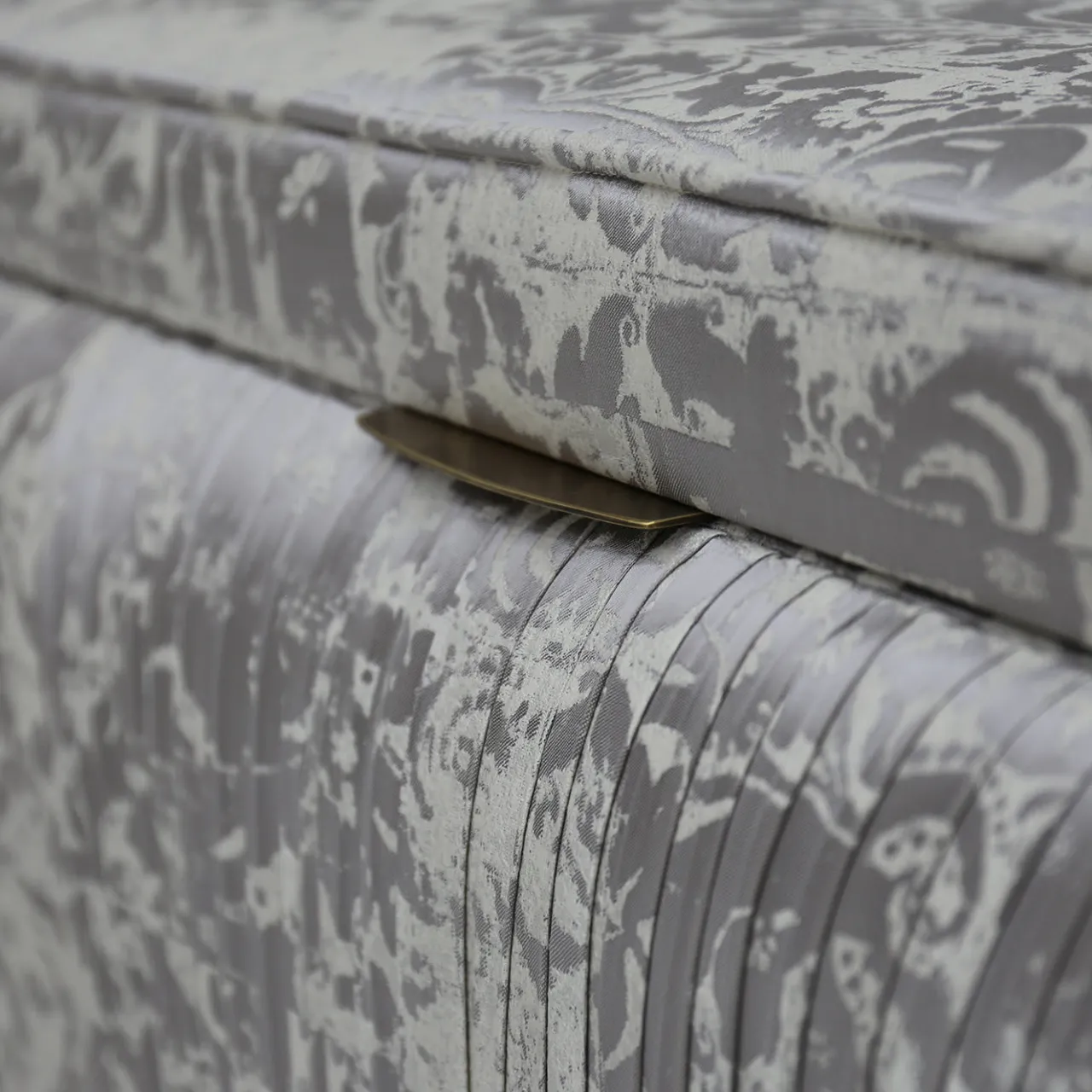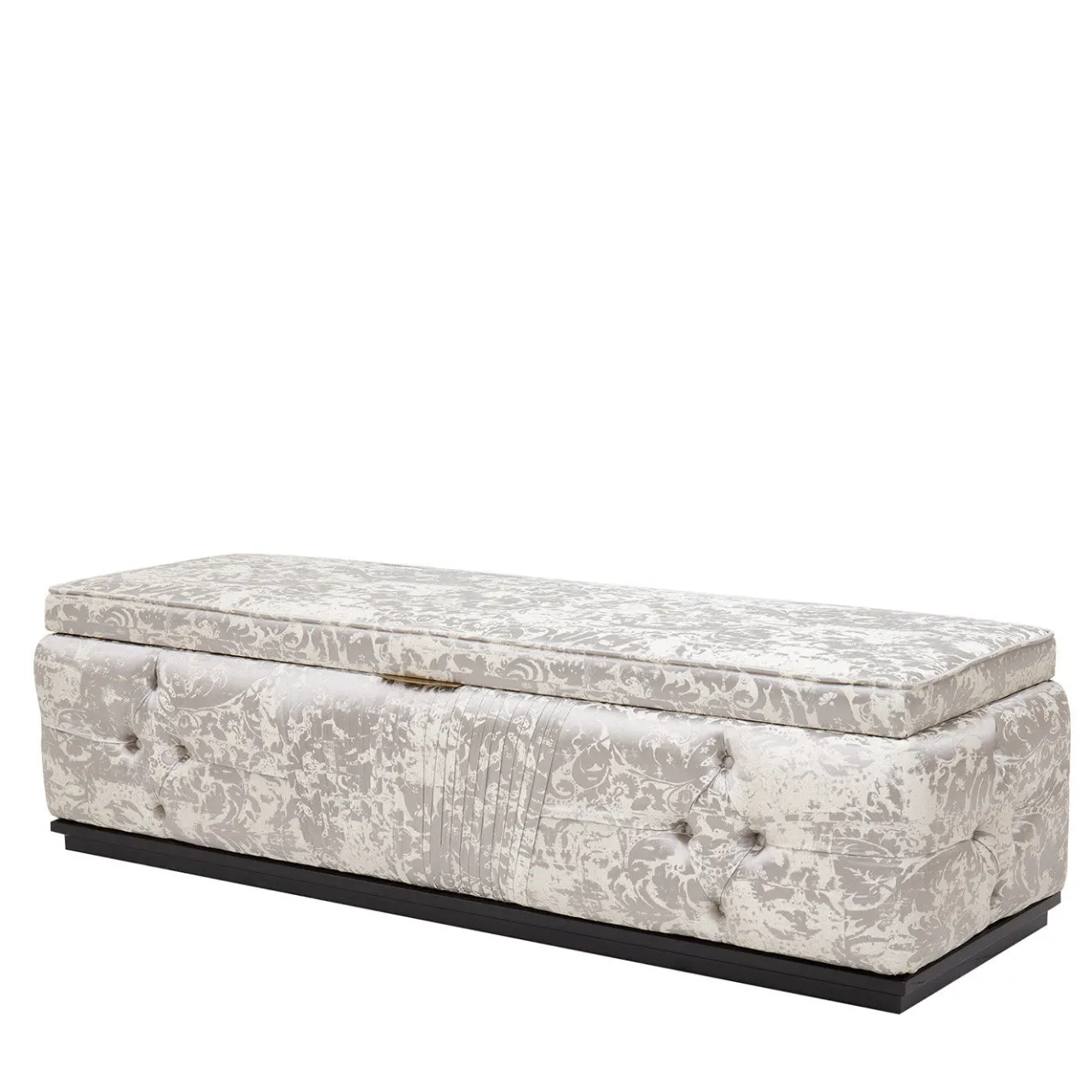 L’opulenza incontra la funzionalità in questa maestosa sedia di ispirazione classica. La panca da letto poggia su una struttura in legno interamente rivestita da un raffinato tessuto bianco con motivi a foglia che mescolano finiture lucide e opache. La panca si apre per rivelare un pratico spazio per riporre ogni tipo di gingillo, oggetto di valore o bene di prima necessità. Per ulteriori dettagli sui materiali, consultare il Concierge.
