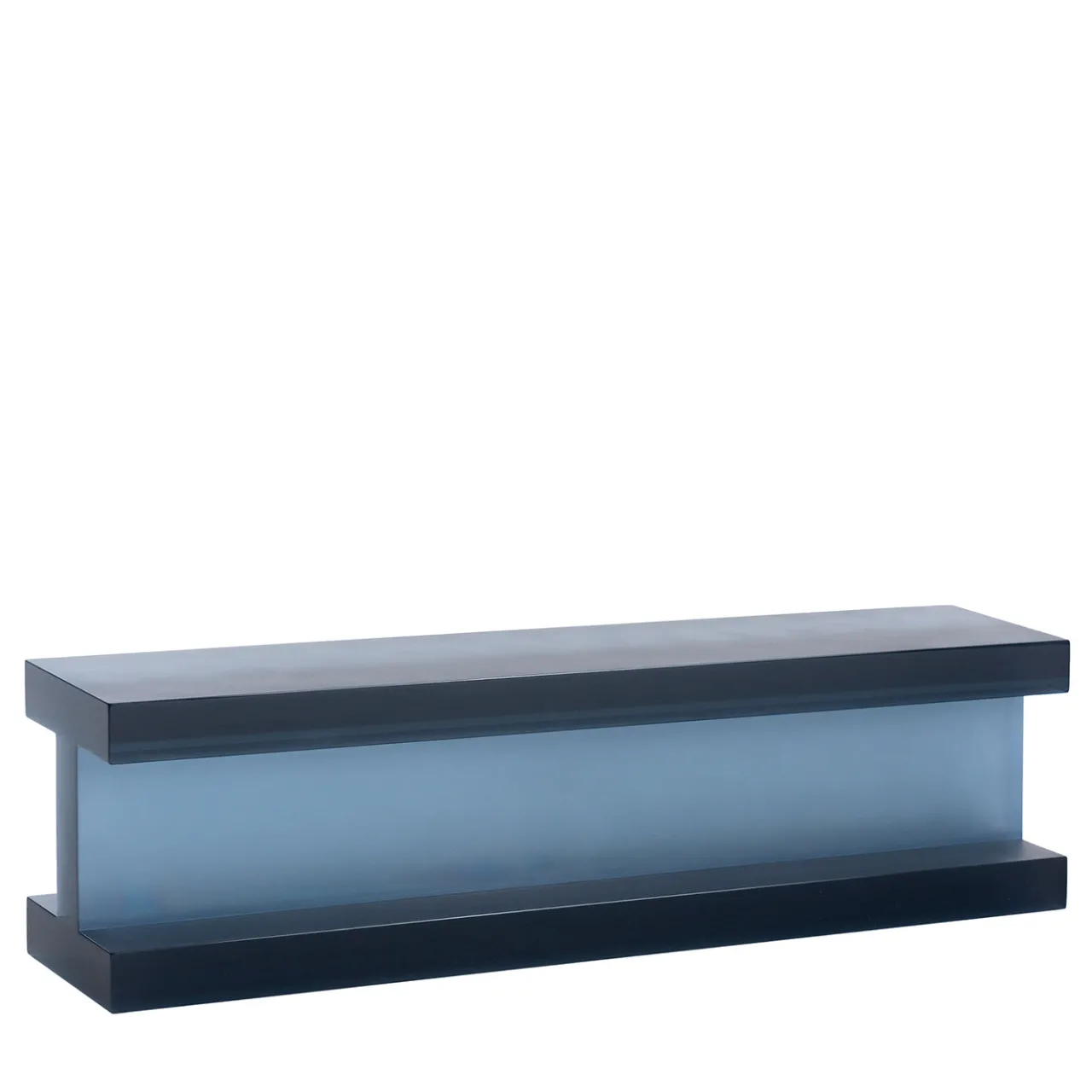 La panchina H si distingue per la sua struttura in resina blu profondo, con trasparenza ridotta che crea un’impressione di profondità infinita. Il contrasto tra superfici lucide e opache valorizza il profilo architettonico a forma di H, evocando riferimenti tradizionali nelle costruzioni, e introduce un interplay sofisticato tra materiali. Il pezzo esplora il rapporto tra luce, geometria e materia, offrendo un equilibrio coinvolgente tra solidità e leggerezza eterea, rivelando come la luce plasmi e animi la struttura stessa. Design di Laurids Gallée.
