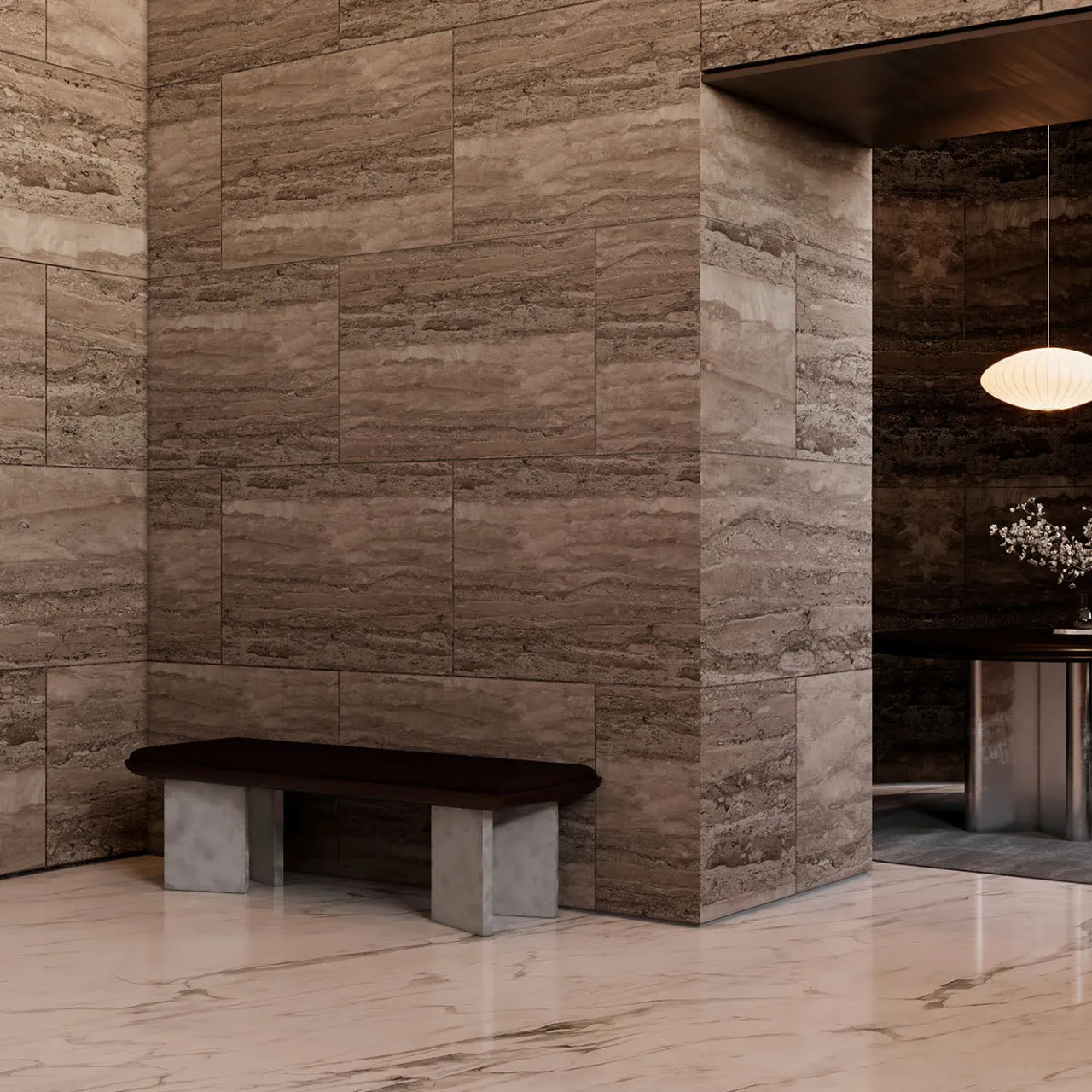 Un moderno omaggio all’antico immaginario greco, Diphrosi si ispira alle proporzioni e alle palette milanesi della metà del secolo scorso, giustapponendo materiali indulgenti e funzionalità versatile, ridefinendo il ruolo della panca all’interno di uno spazio. Panca rettangolare smerlata a tre posti Birdseye, con rivestimento in pelle scamosciata vellutata e gambe diagonali in acciaio spazzolato a mano.
