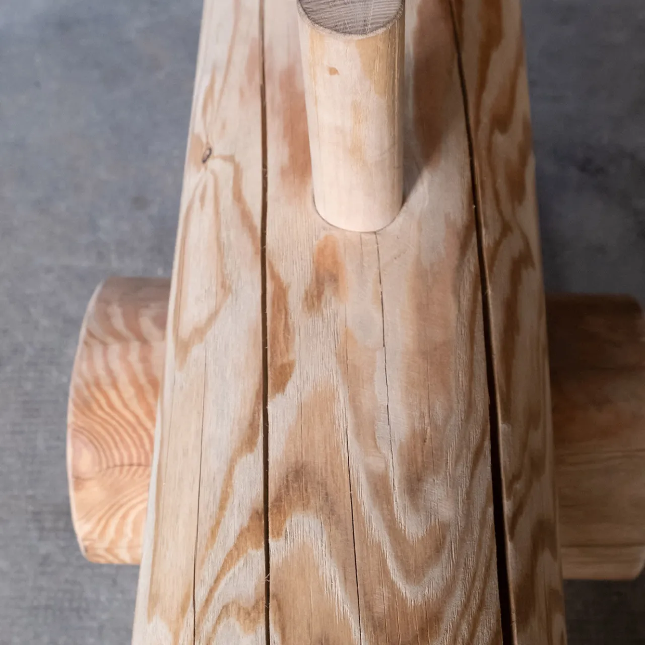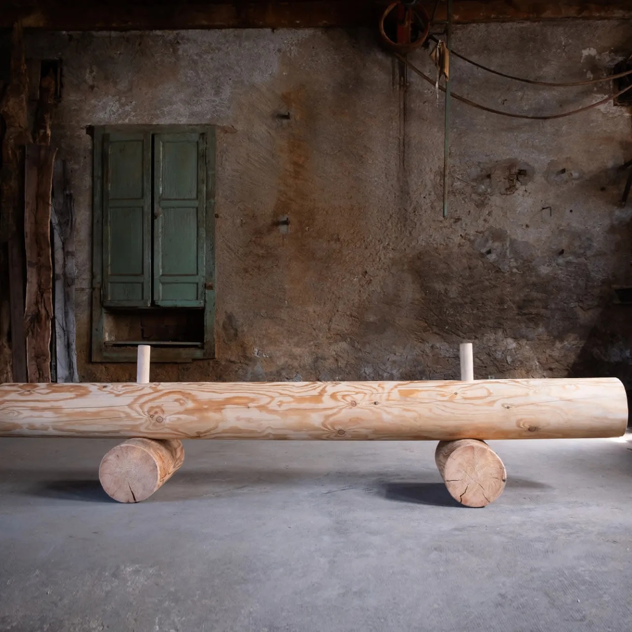 La panca in larice naturale utilizza solo elementi di fissaggio in legno per la sua struttura. La finitura è lasciata nuda, per accentuare le venature sinuose del larice e la sua bella gamma di tonalità ocra, arancio, rosso e sabbia. Eventuali movimenti, crepe e cambiamenti nell’aspetto del legno sono caratteristiche intrinseche di questi oggetti e derivano dall’assestamento naturale e dalle diverse condizioni ambientali del legno. A causa della lavorazione artigianale, i motivi e le dimensioni possono variare leggermente in ogni articolo.