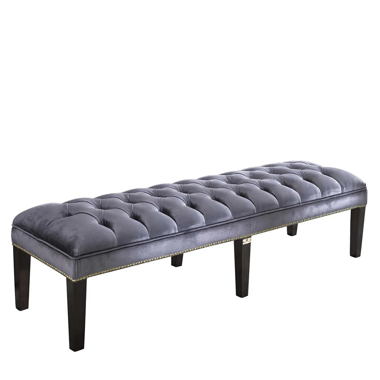Questa graziosa panca con inserti in legno farà bella mostra di sé ai piedi del letto o come parte dell’arredamento di qualsiasi spazio abitativo. Rivestita in un morbido tessuto grigio, è sostenuta da sei gambe in legno scuro. Semplice ed elegante, questa panca è bella ma anche pratica.
