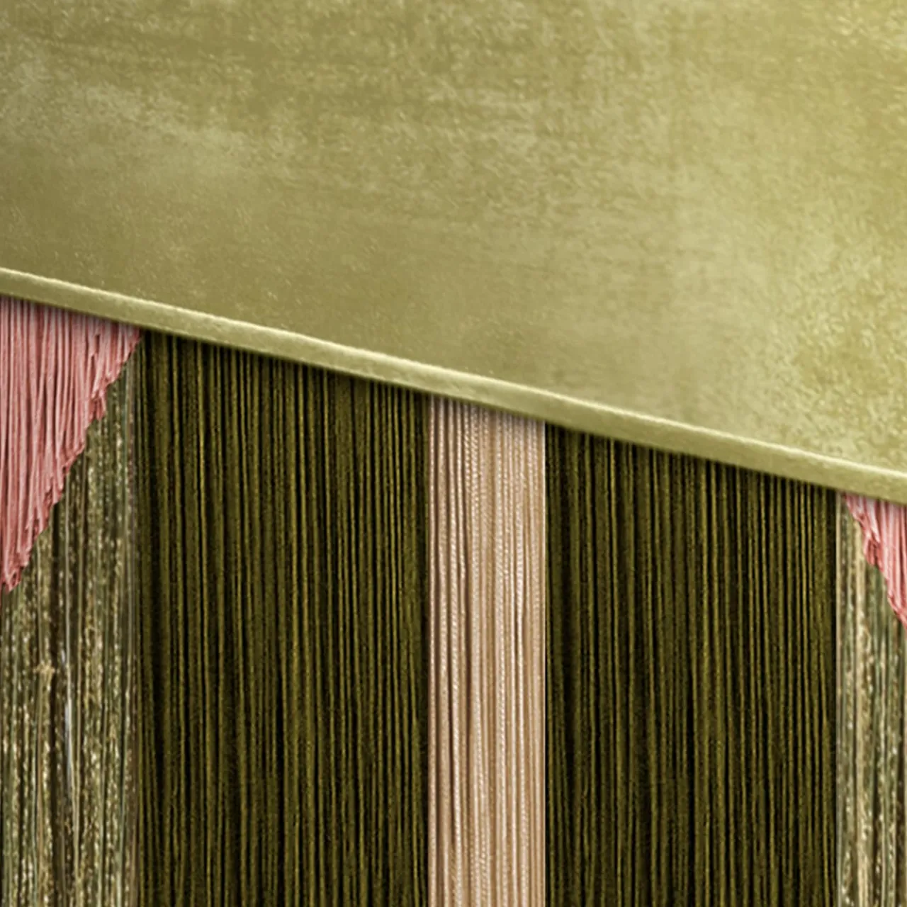 Una ricca palette di verdi interrotta solo da romantici accenti rosa è quella scelta per questa elegante panca artigianale. Prezioso pezzo di valore sartoriale, si distingue per un trionfo di sottili frange di viscosa che avvolgono la struttura in faggio creando un accattivante motivo di ispirazione tribale. La sensazione tattile è assicurata dal morbido velluto verde pisello che riveste la seduta. Ogni pezzo su misura è impresso sul fondo della fodera del pouf e firmato, numerato e datato personalmente dal designer.