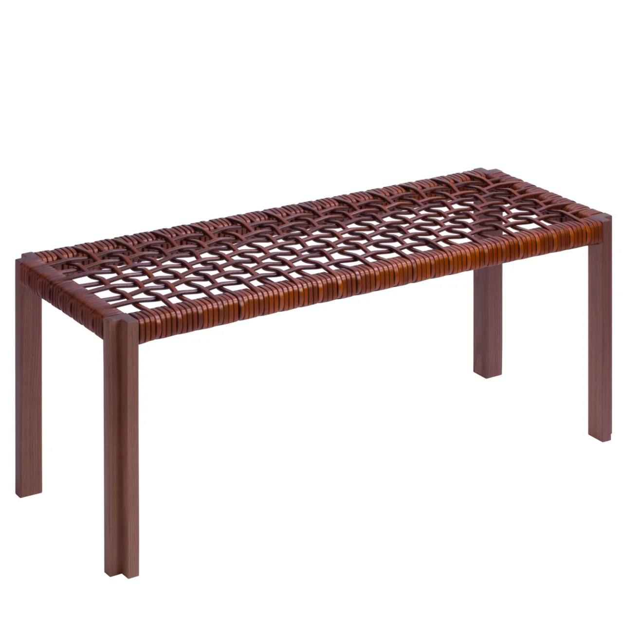 L’elemento distintivo di questa superba panca, parte della collezione Structura, è la sua sorprendente seduta a strisce di pelle intrecciate. Sostenuta da una struttura in legno rifinito in noce e da gambe con sezione a L, questa panca sarà un’aggiunta versatile a un interno rustico o moderno. Accanto a un tavolo da pranzo o in un ingresso, questo pezzo conferirà una qualità audace e leggera a qualsiasi stanza della casa. È disponibile anche in pelle nera con finitura wengé per il legno.