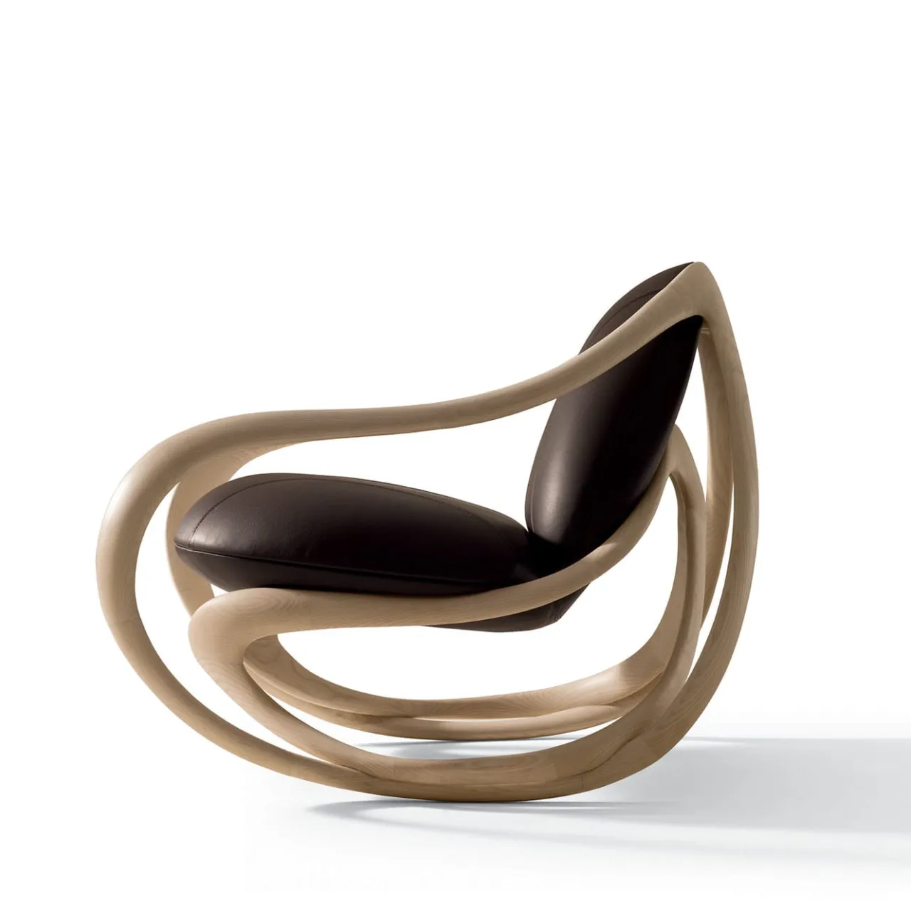 Una danza di curve fluide descrive fedelmente l’estetica scultorea di questa poltrona a dondolo in frassino con finitura naturale. Una combinazione di poliuretano compatto rigido e poliuretano flessibile espanso polimerizzato a freddo assicura un livello di comfort impeccabile alla seduta leggermente inclinata, infine avvolta nella pregiata pelle Brown. Per le varianti di rivestimento in tessuto, contattare il Conciege.