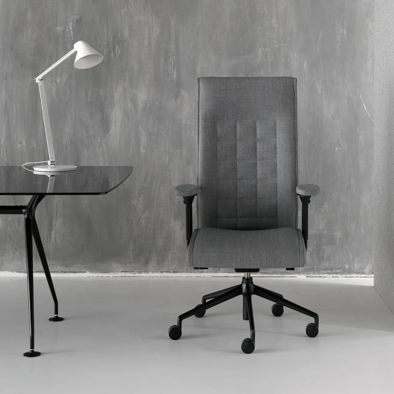 Questa elegante poltrona direzionale imbottita è caratterizzata da uno schienale alto e da una base a 5 razze, che può ruotare e muoversi verso l’alto e verso il basso. È completata da braccioli neri 4d regolabili con cuscinetti imbottiti, che possono alzarsi e abbassarsi.