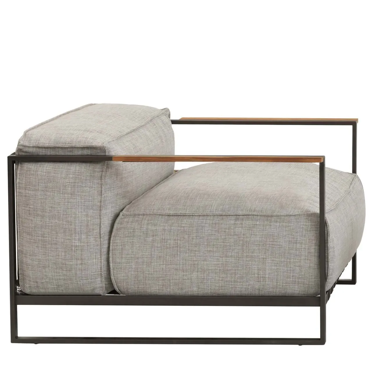 Abbinata al tavolino della stessa collezione, questa accogliente poltrona aggiungerà un accento raffinato a un patio o a una veranda moderni. Ariosa ed essenziale, la struttura in acciaio inox con finitura verniciata a polvere color grafite è impreziosita da un dettaglio in legno di iroko marrone dorato sui braccioli e sostiene due comodi cuscini rivestiti in tessuto grigio mélange (sfoderabile). Rinforzati con cinghie di poliestere per garantire il comfort, i cuscini sono imbottiti con schiuma ad asciugatura rapida. Interamente realizzata con materiali specifici per uso esterno, questa poltrona infonde stile a qualsiasi ambiente contemporaneo. Su richiesta, sono disponibili le certificazioni per il settore contract e commerciale.