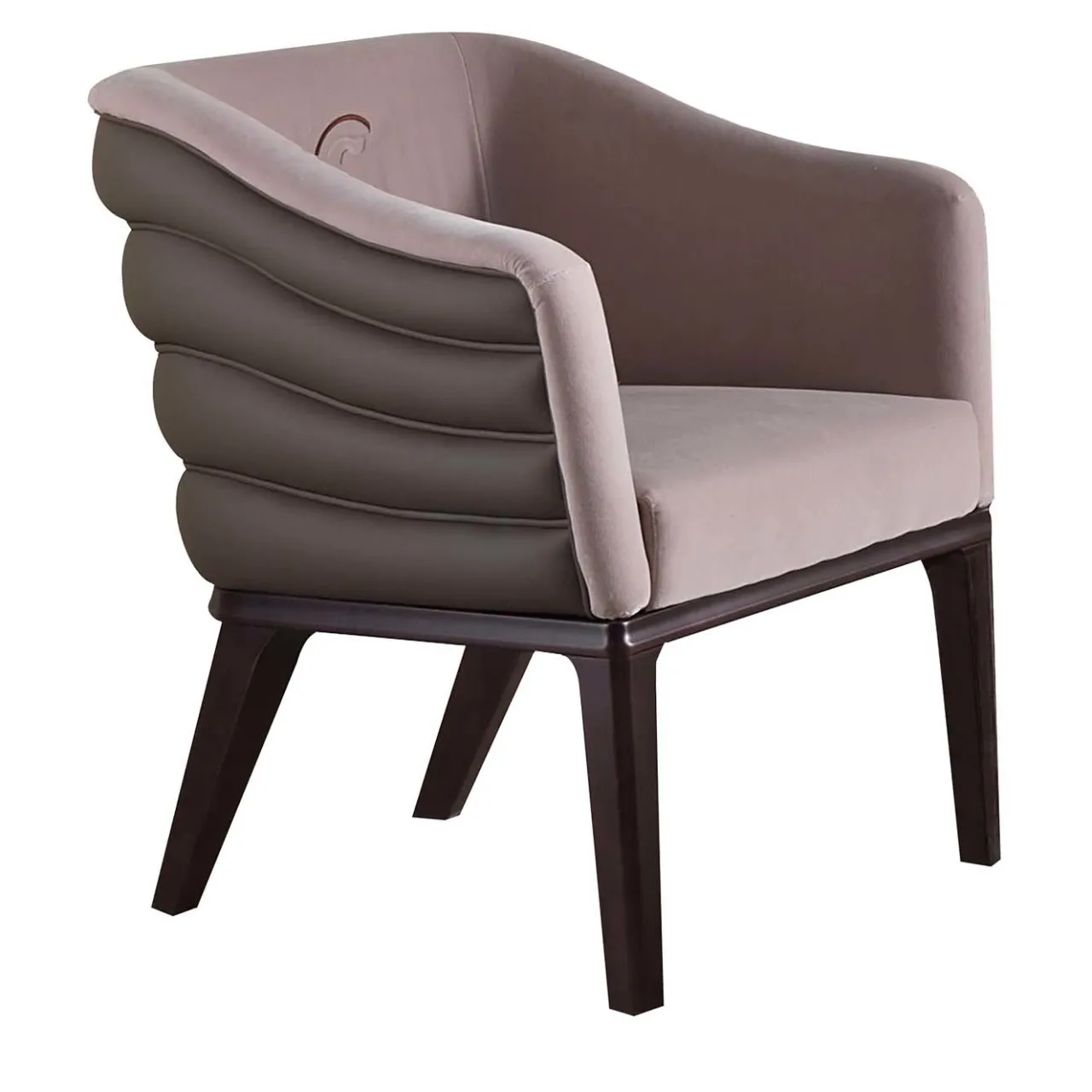 La poltrona Club offre una fusione perfetta di stile e comfort. La sua struttura in legno massiccio è sormontata da uno strato di morbida imbottitura in poliuretano, ulteriormente arricchita da cinghie elastiche intrecciate. Poggiata su piedi in legno di sicomoro scuro, questa poltrona è rivestita in un versatile tessuto color tortora, impreziosito da una trapuntatura orizzontale che conferisce un fascino sofisticato.