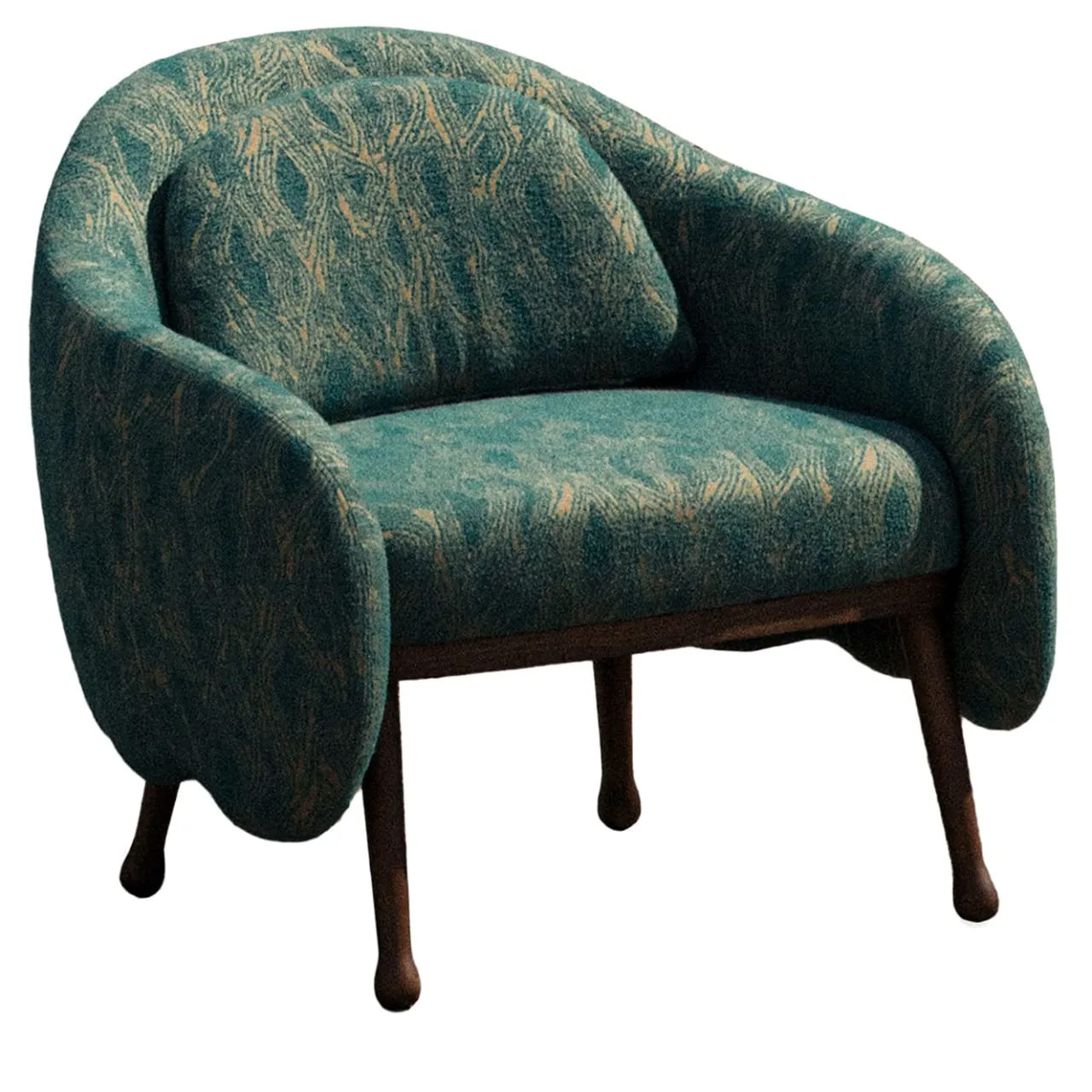 Un’ode alla natura attualizzata in un design contemporaneo, questa poltrona in frassino finitura noce deve il suo nome al bordo smerlato che accentua il profilo inferiore della scocca e alla forma sinuosa delle gambe. Dotata di cuscino lombare per un comfort impeccabile, fa sentire l’utente coccolato grazie al design avvolgente della sua seduta alta 44 cm e rivestita con un’imbottitura a fantasia che mescola uno sfondo chiaro con un intricato motivo verde acqua.