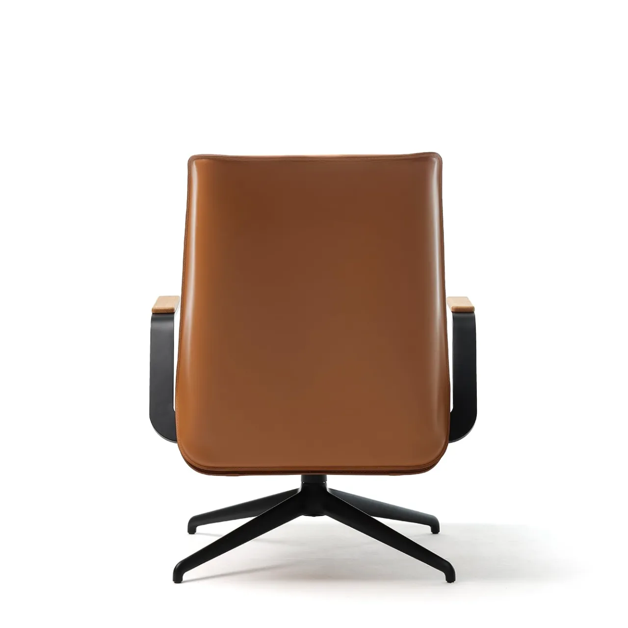 La poltrona Endo è un elegante design girevole realizzato in pelle bovina spessa, che unisce eleganza e durata. Il suo telaio in tubi d’acciaio sostiene pannelli di pelle cuciti senza schiuma o elastici, garantendo la sostenibilità e permettendo alla pelle di adattarsi in modo unico nel tempo. I braccioli in acciaio con uno strato di rovere massiccio aggiungono calore, mentre la base girevole a quattro razze con ritorno automatico aumenta il comfort. Disponibile in 20 colori. Contattare il concierge per maggiori dettagli. Disegnato da Alberto Colzani.