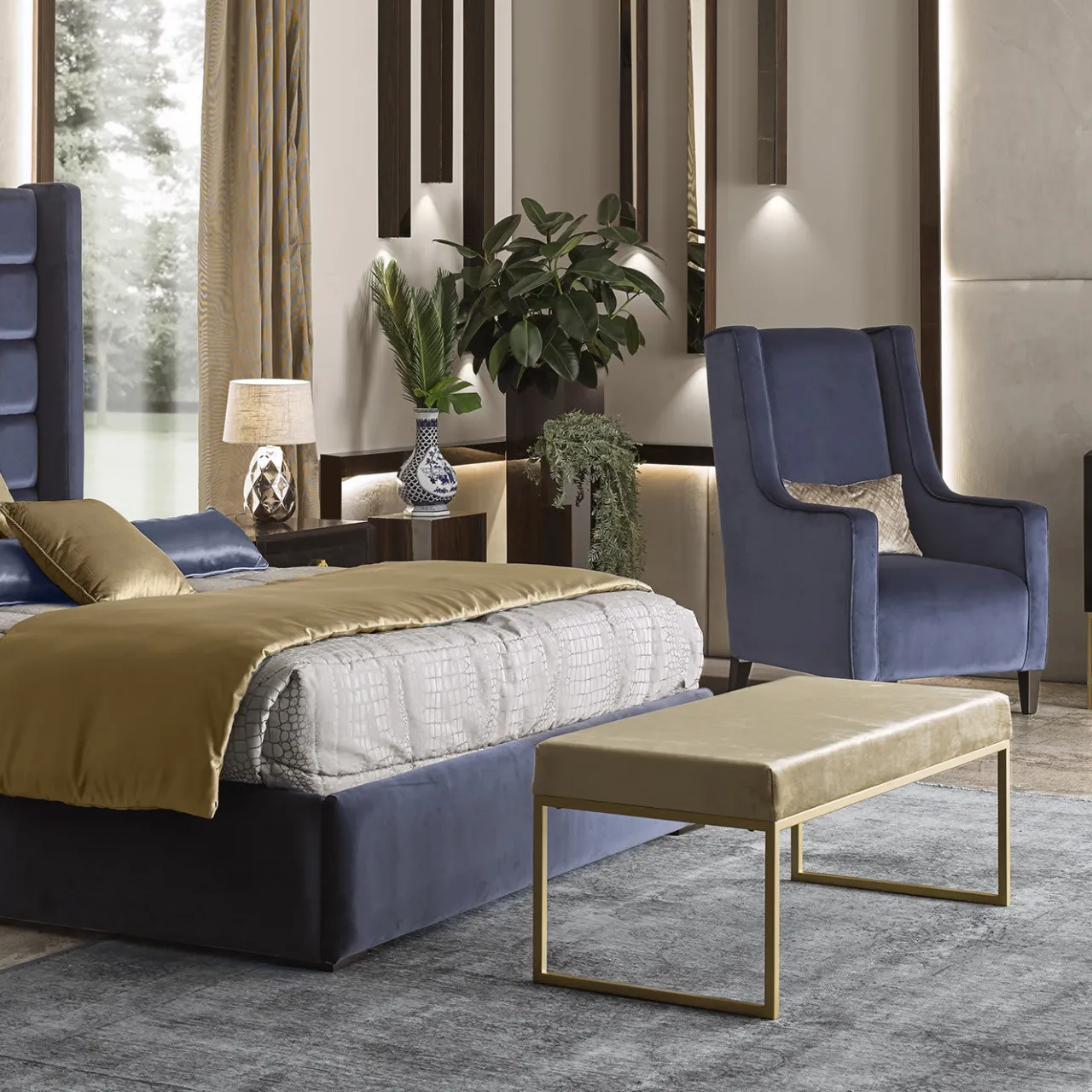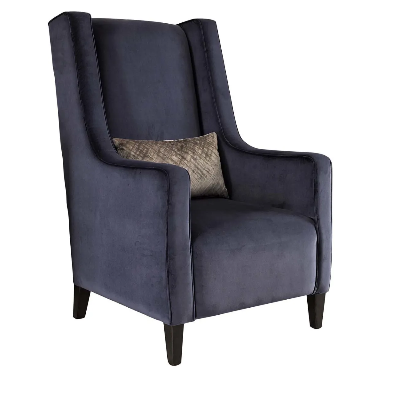 Questa sofisticata poltrona wingback blu scuro con schienale alto e squadrato promette di essere un’aggiunta semplice e classica a qualsiasi casa o ufficio. La poltrona, che poggia su gambe in legno wengè scuro, è interamente rivestita in tessuto blu scuro e ha una seduta che si estende fino alla struttura della sedia.