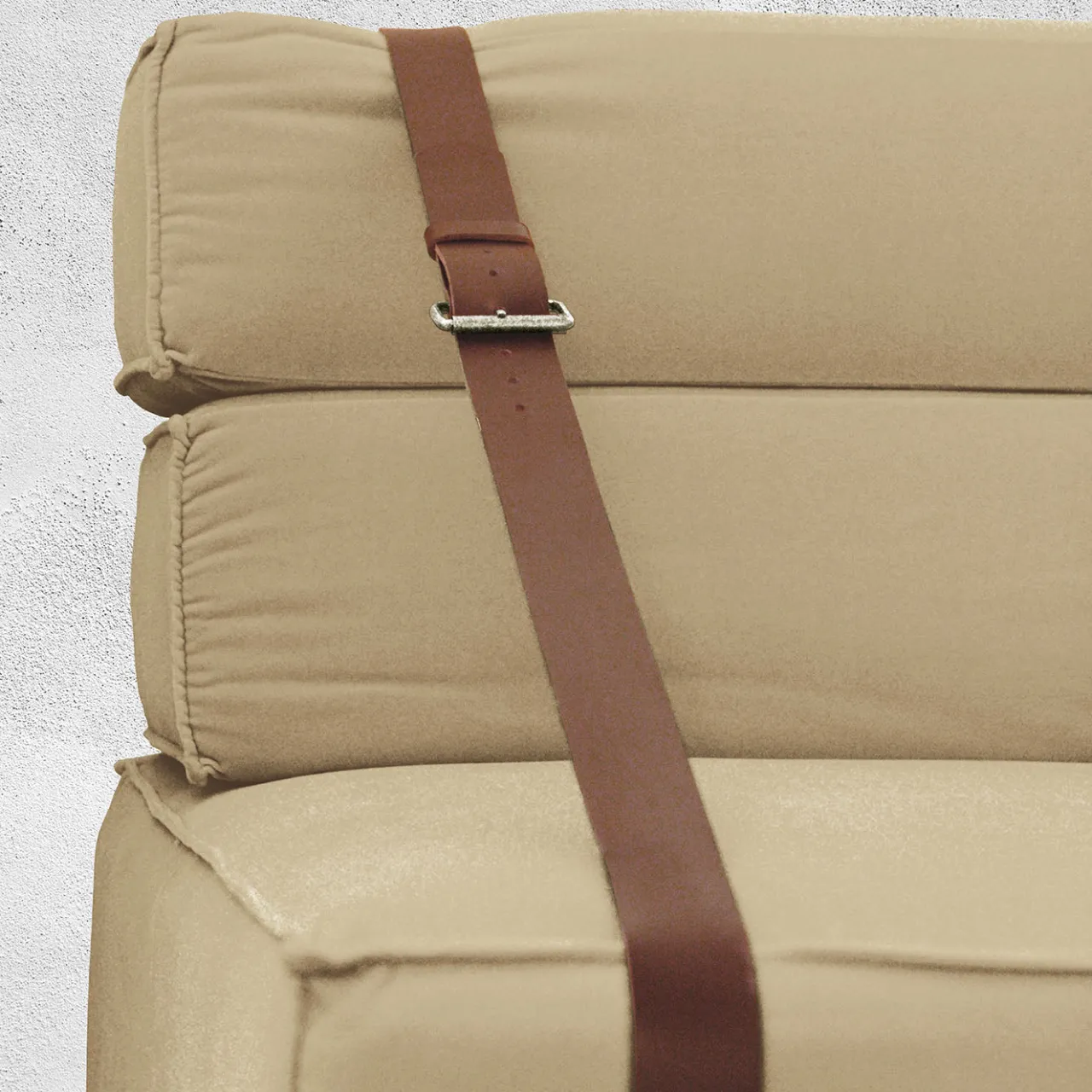 Questa poltrona, definita dal suo tessuto ecologico “bio-cotton”, incarna il lusso con un tocco sostenibile. Il suo morbido velluto in una tonalità beige neutra valorizza qualsiasi ambiente, offrendo un’estetica calma e sofisticata. La poltrona rende omaggio ai nostalgici trasporti di merci al porto di Genova, evocando ricordi di viaggio. È personalizzabile in varie dimensioni e finiture e offre anche una versione per esterni con cinghie in pelle e molteplici opzioni di tessuto, per una versatilità che si adatta a qualsiasi ambiente.