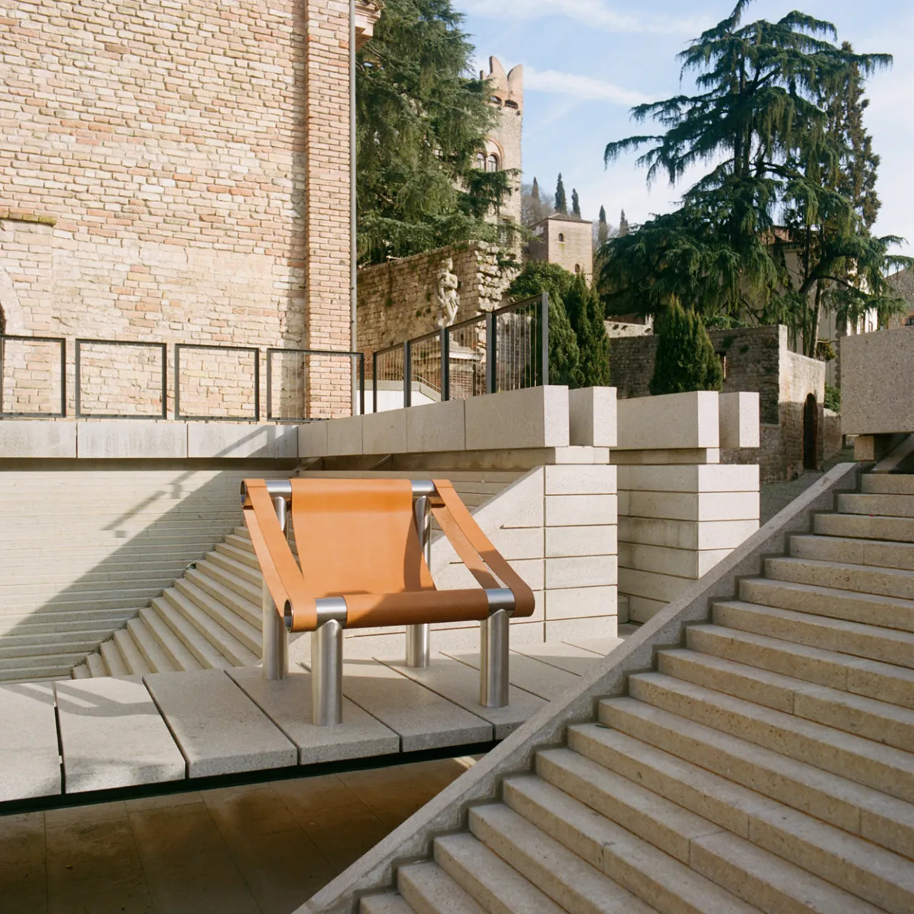 La poltrona Eso presenta una struttura in acciaio tubolare combinata con cinghie in cuoio naturale pieno fiore che offrono sia struttura che comfort. Il design equilibra una forma geometrica rigida con la morbida tensione sostenitoria della pelle, risultando in una poltrona scultorea adatta all’uso quotidiano. La poltrona mette in mostra una sofisticazione minimalista, fondendo materiali industriali con texture organiche per una soluzione di seduta contemporanea.