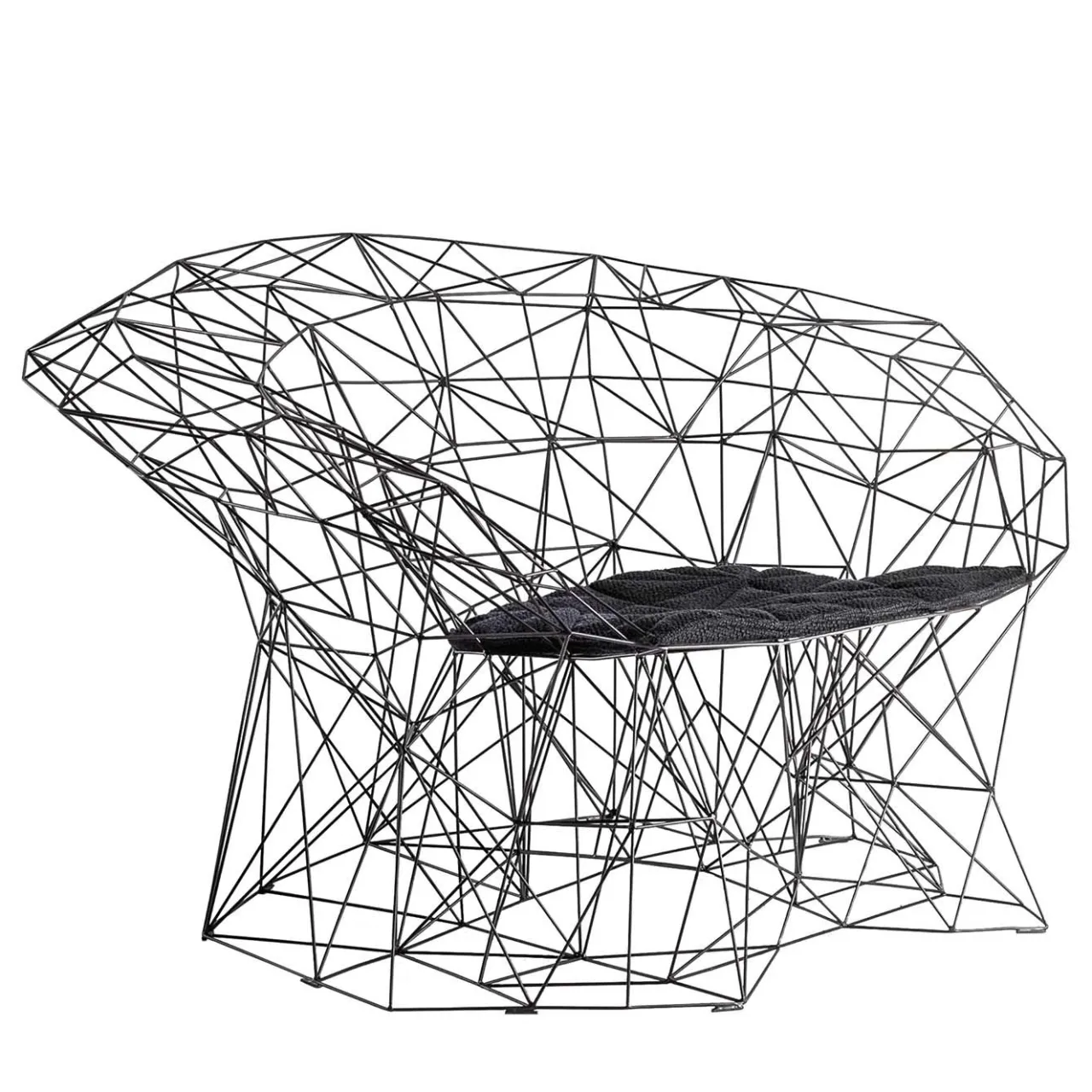 Questo capolavoro scultoreo si ispira a un elemento fondamentale dei paesaggi del Sud Italia, il cactus a matita. Si compone di una complessa rete composta da sottili aste in acciaio con finitura nera che creano una struttura geometrica che sostiene il cuscino in fibra di poliestere della seduta, dando l’illusione ottica di sedersi nell’aria. Questo caos ordinato combina comfort e tecnologia in un pezzo accattivante che arricchirà in modo versatile un interno contemporaneo. I cuscini decorativi nell’immagine non sono inclusi in questo articolo.