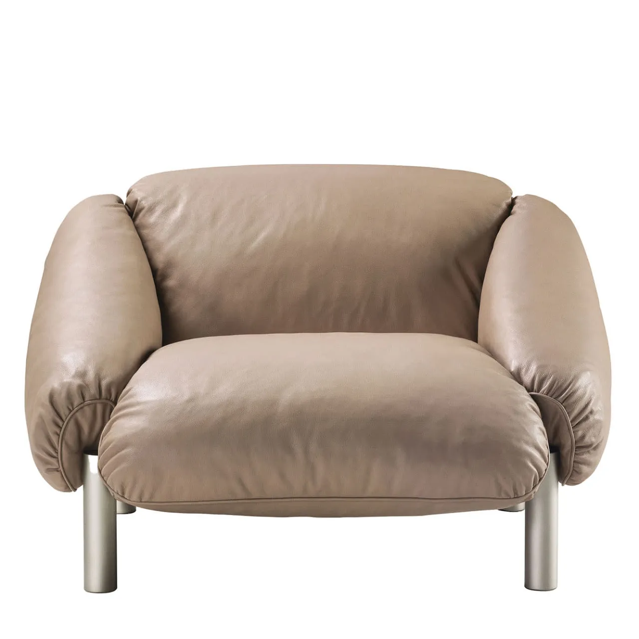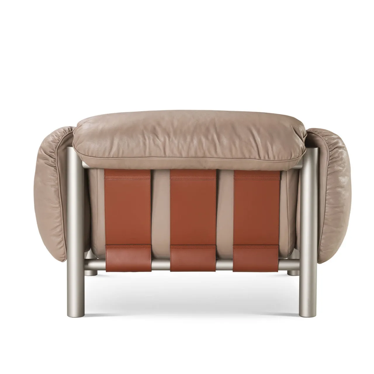 Parte di una serie che celebra il design brasiliano di metà secolo, questa poltrona è un trionfo di volumi audaci lussuosamente rivestiti in pregiata pelle beige. Cinghie in pelle marrone sostengono sia la seduta che lo schienale, che sono completati da braccioli inclinati che condividono la stessa generosa imbottitura in piuma con il resto dell’accogliente silhouette. Elementi cilindrici in metallo completano il design. Contattare il Concierge per conoscere le varianti disponibili.