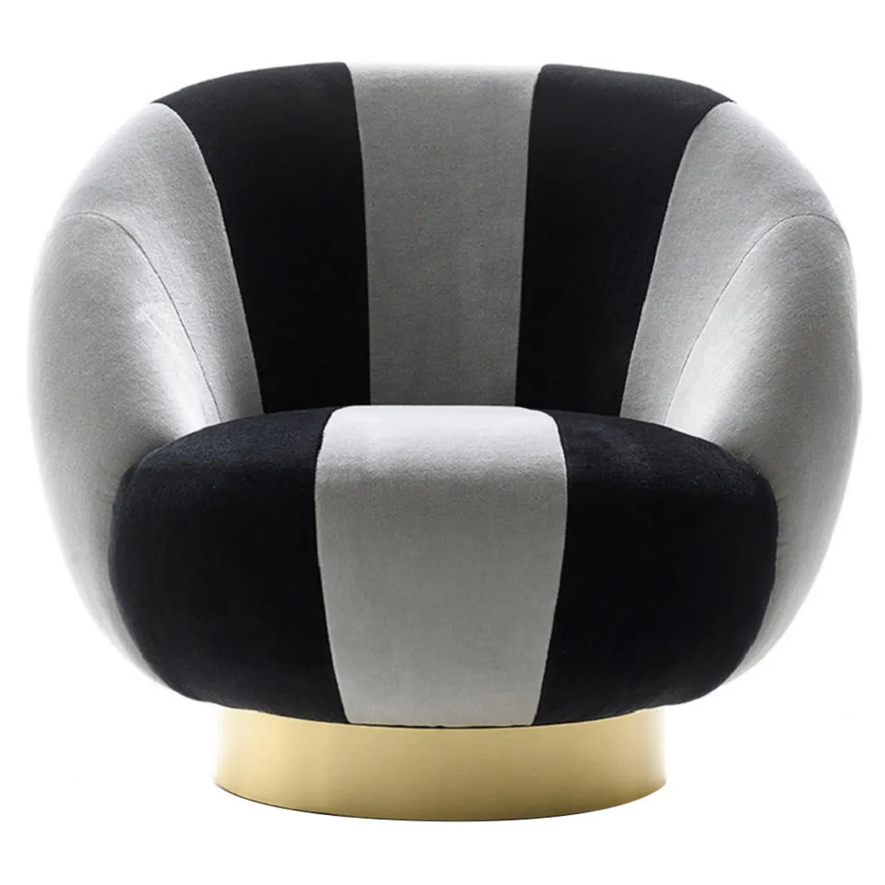 Questa elegante poltrona girevole nera e grigia, disegnata da Studio 63 per Marioni, presenta una struttura in metallo ed è disponibile in diversi rivestimenti in tessuto o pelle.