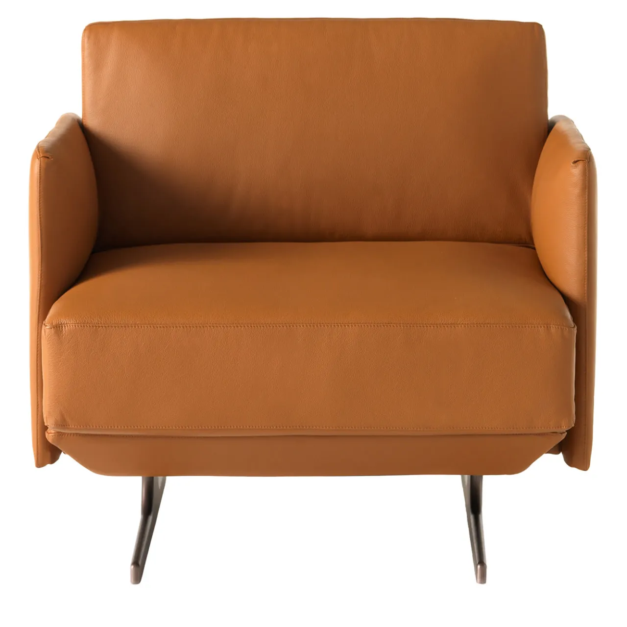 Questa elegante poltrona non imbottita è arricchita da piedi in alluminio verniciato in metallo cacao.