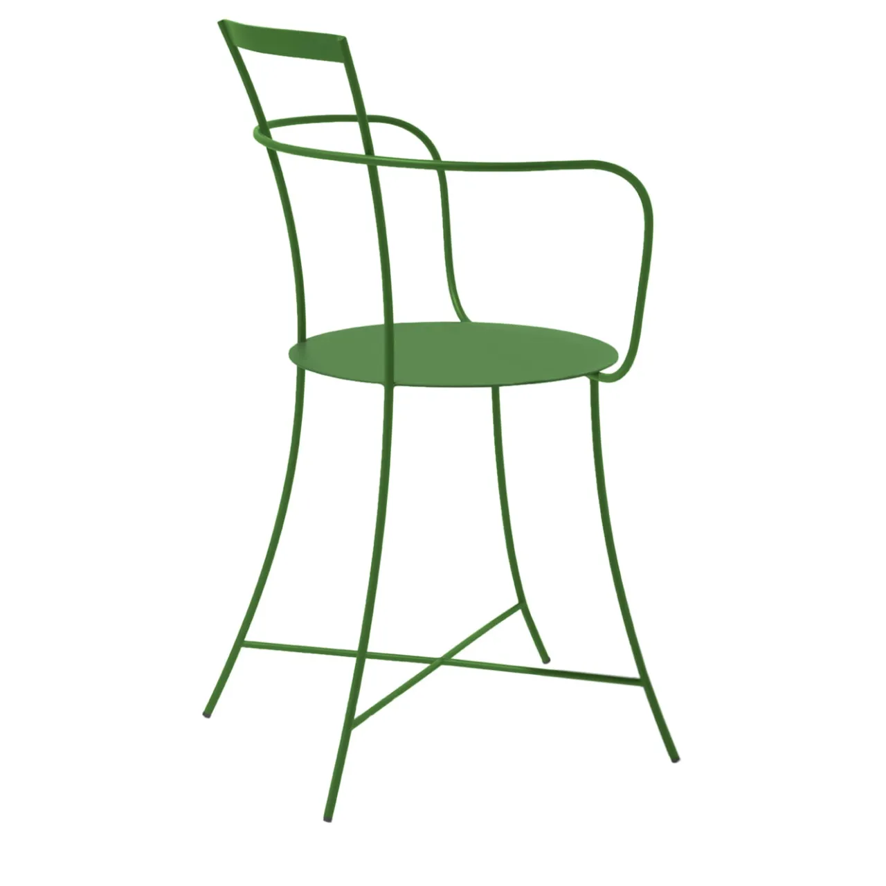 Disegnata da Mario Scairato, questa raffinata poltrona per esterni creerà un angolo colorato e stimolante in un giardino, in un patio o in una terrazza. Realizzata a mano in acciaio rinforzato e verniciata a polvere in una tonalità verde, è definita da linee delicate, continue e sinuose, caratterizzate da un’estetica elegante e minimalista.