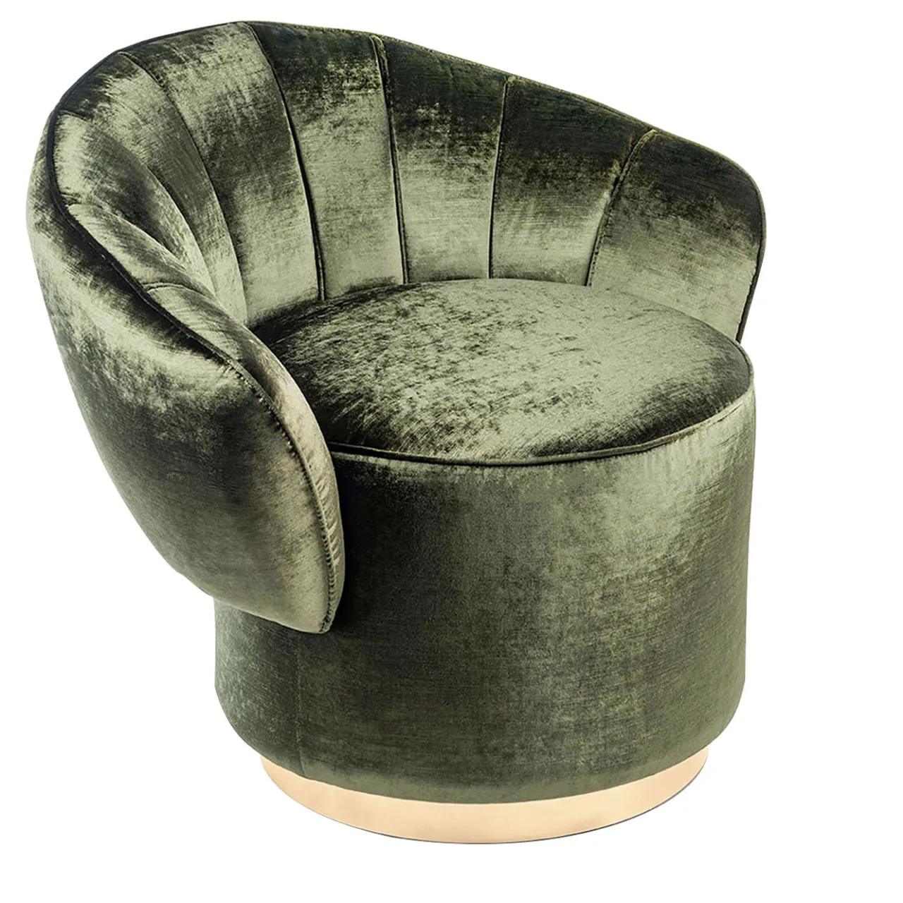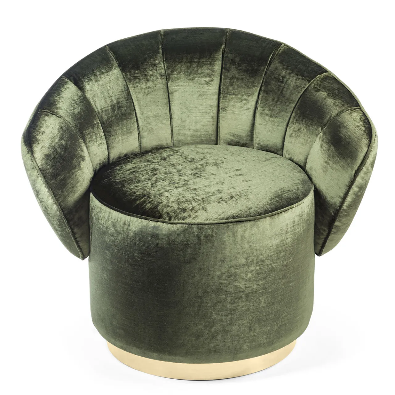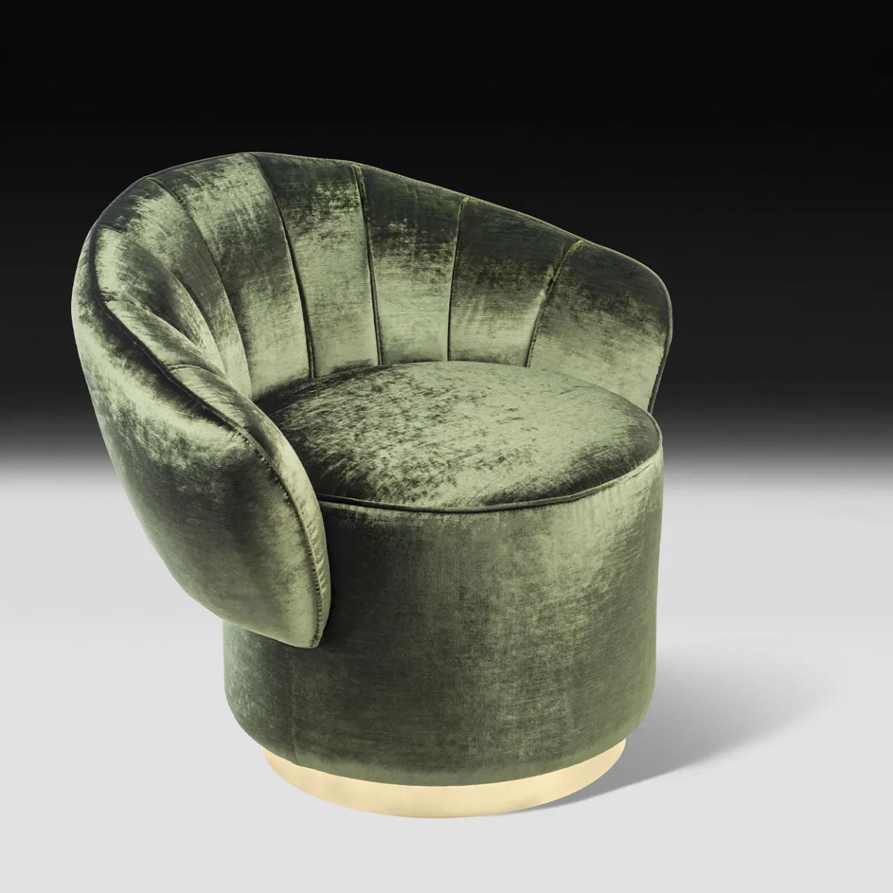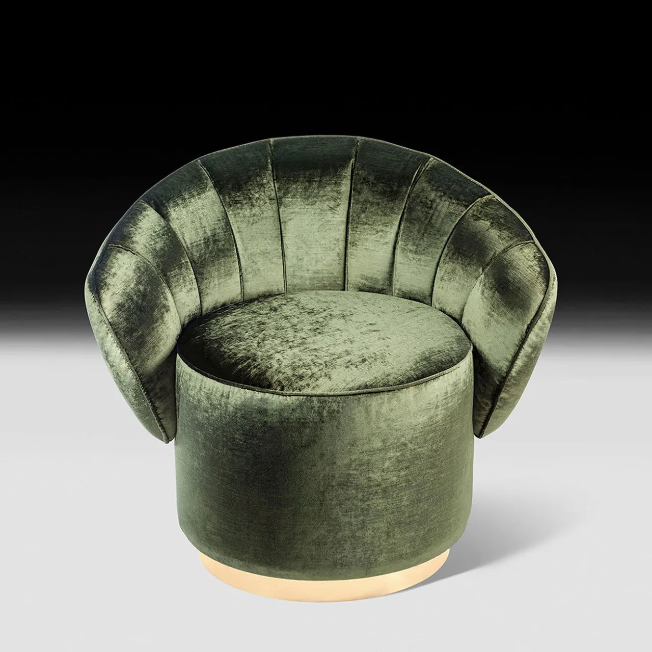 Questa superba poltrona farà bella mostra di sé in qualsiasi arredamento, grazie al suo particolare schienale a conchiglia, sostenuto da un semplice cuscino di seduta alto e cilindrico. Questo pezzo pregiato è stato disegnato da Giorgio Ragazzini per VG e si ispira allo stile art déco e all’eleganza bohémien creata in Francia alla fine del XIX secolo. La struttura in legno è rivestita in velluto verde e si integra magnificamente con l’accento dorato della base a plinto.