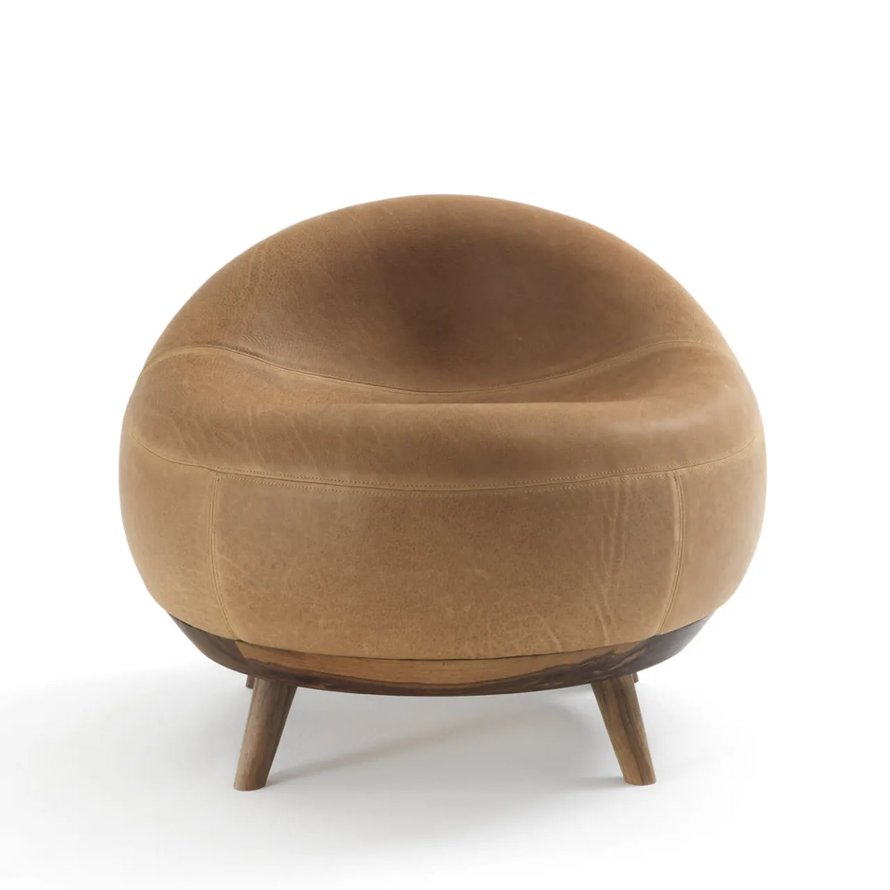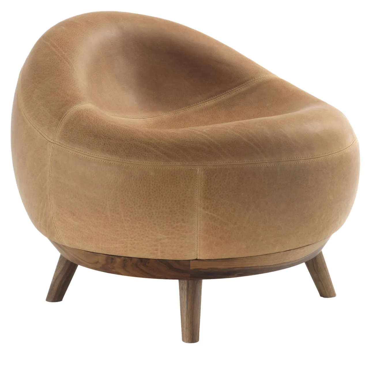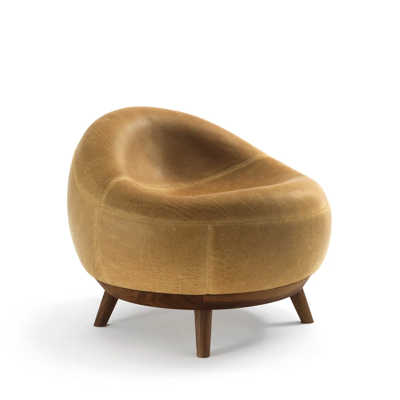 Una scocca perfettamente ergonomica, le cui linee fluide e il design concavo ricordano un tenero nido, contraddistingue questa poltrona di Terry Dwan. Sollevata su gambe compatte e affusolate, la sua struttura in massello di noce senza nodi sfoggia un superbo rivestimento in pelle color cammello definito da dettagli irripetibili e alterato solo dalle necessarie cuciture tono su tono. Rifinito a olio, è disponibile in diverse varianti.