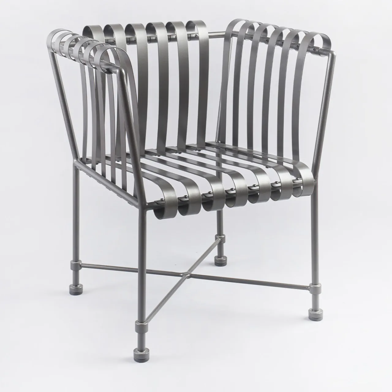 Realizzata in acciaio zincato e verniciato a polvere, questa poltrona è caratterizzata da un design accattivante. Le robuste linee lineari dello schienale e delle gambe contrastano con le curve sottili e ricciolute dei braccioli, creando un look classico, moderno e assolutamente unico. Fondata nel 1939, l’Officina Ciani cerca di combinare la tradizione artigianale fiorentina con uno stile all’avanguardia. Include cuscini in tessuto per esterni.