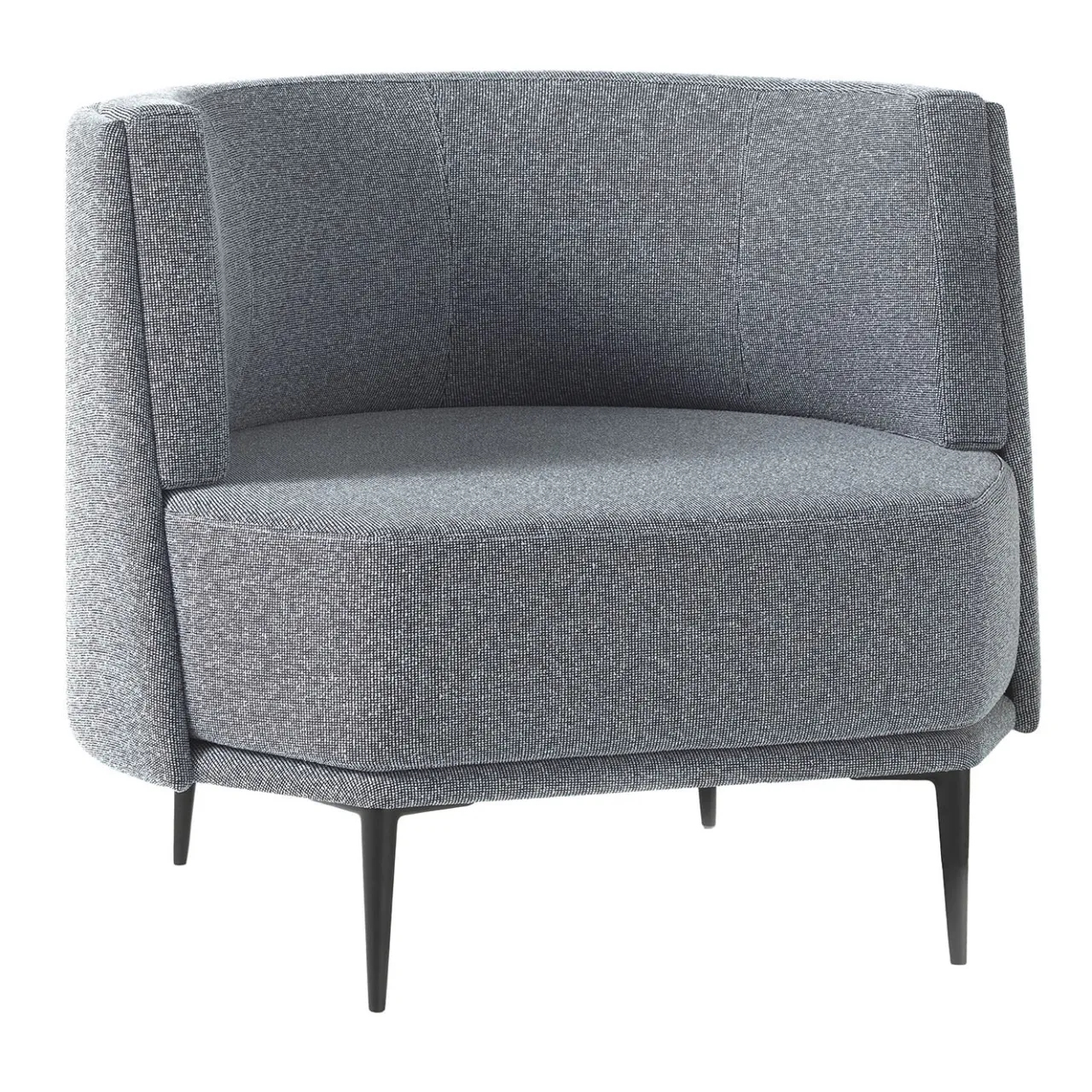 Questa poltrona imbottita è caratterizzata da piedi in alluminio verniciato in blu opaco. Eleganza e funzionalità per ogni salotto.