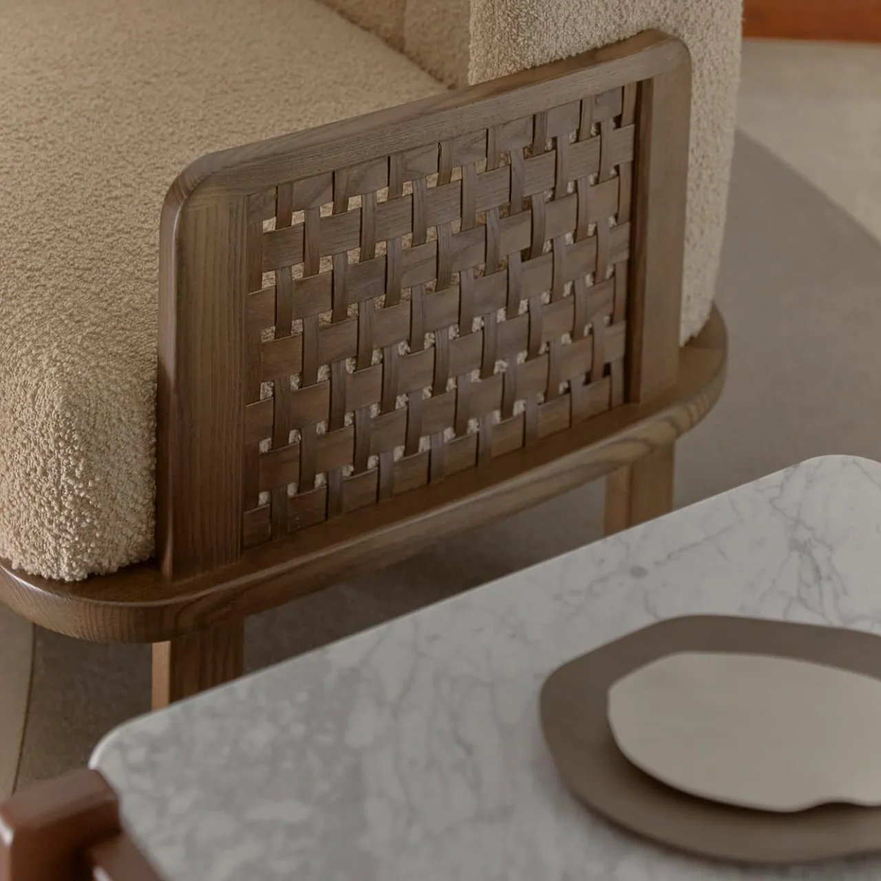 Disegnata da Cristina Celestino, la poltrona Raquette unisce un’artigianalità senza tempo a un fascino contemporaneo. Realizzata in frassino tinto tabacco e impreziosita da tresigallo, rende omaggio all’arte di intrecciare le doghe di legno. Ispirata al tennis, i suoi lati strutturati ricordano le corde della racchetta, combinando la robusta struttura in legno con una morbida imbottitura organica per un comfort squisito e un’armoniosa fusione di tradizione e modernità.