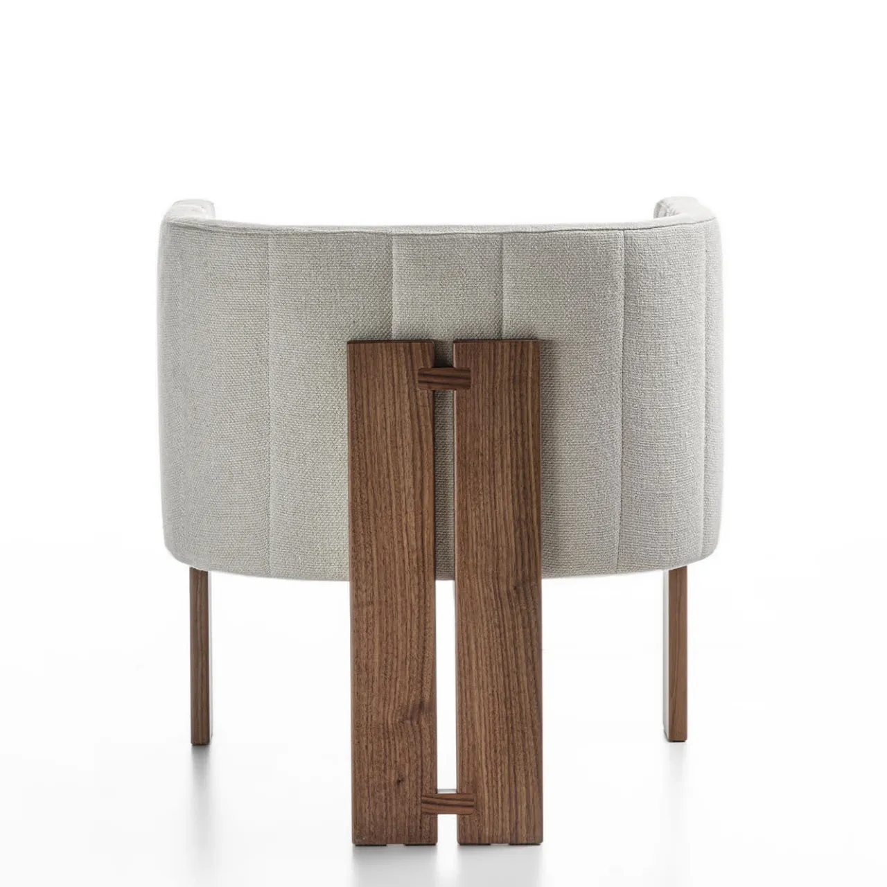 Accogliente e luminosa, questa poltrona compatta è un design esclusivo in cui i contrasti convivono armoniosamente. Il rigore della base in noce canaletto è contrastato dalla curva drammatica che traccia la scocca imbottita e completamente avvolgente, mentre una delicata texture trapuntata ravviva il rivestimento in tessuto bianco per una dichiarazione di sobria eleganza. Per la versione della sedia, contattare il Concierge.