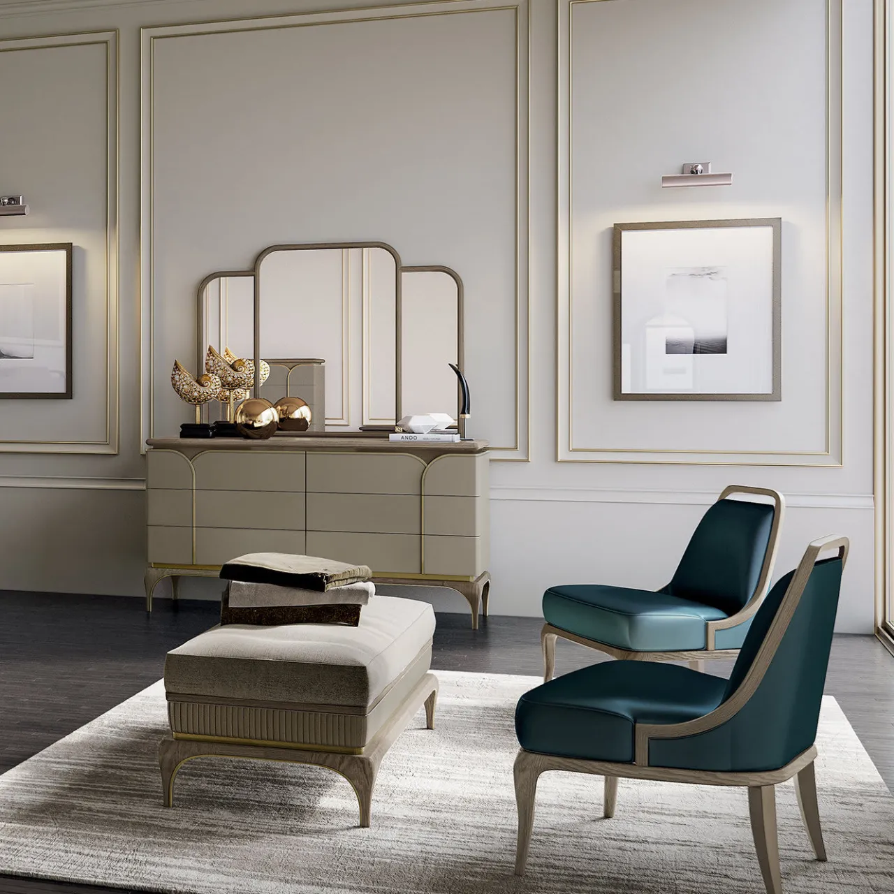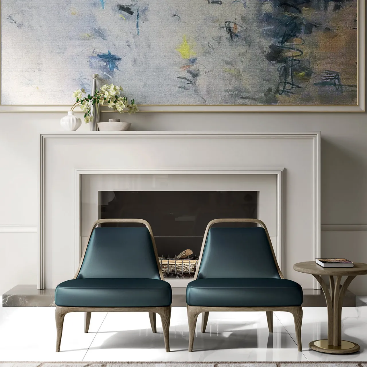 Questa poltrona, che emana comfort e raffinatezza, è un ingegnoso pezzo di arredamento funzionale realizzato con materiali moderni e resistenti. È composta da una struttura in legno di frassino con uno schienale alto, imbottito in poliuretano espanso e rivestito in ecopelle verde petrolio. Questo pezzo è disponibile anche in vera pelle o in tessuto; chiedete al Concierge per i dettagli.