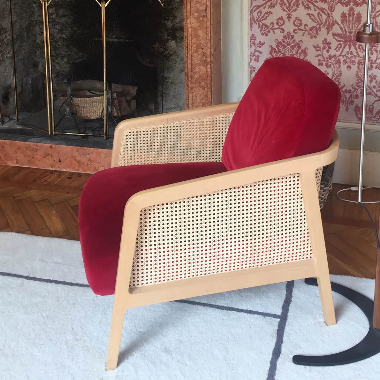 Un salotto e una poltrona in legno e paglia, che richiama l’atmosfera del club esclusivo ma in chiave contemporanea. Vienna è una poltrona da salotto straordinariamente comoda ed elegante, disegnata da Emmanuel Gallina. La struttura è in faggio massiccio, con finitura naturale. Lo schienale e i fianchi sono in paglia di Vienna intrecciata a mano e fissata in una fresatura. Cuscini in poliuretano espanso a densità differenziata. Fodera sfoderabile in velluto rosso. Chiedere al Concierge le opzioni di personalizzazione.