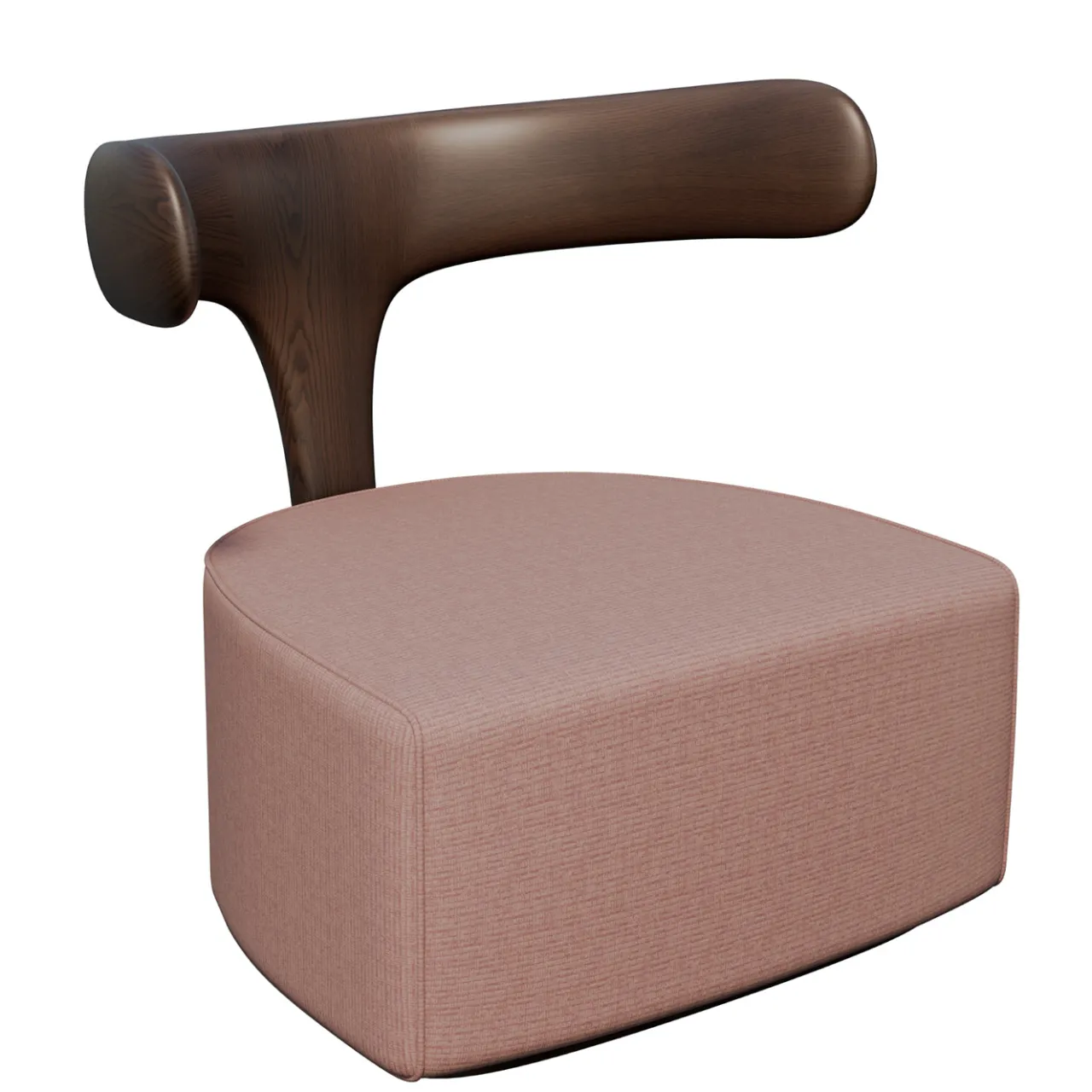 La poltrona lounge Moby Dick in legno bruno imbottita presenta una base e uno schienale scolpiti in legno di frassino, fissati alla seduta imbottita con perni in ottone. La seduta è imbottita per il comfort ma non rimovibile. L’altezza della seduta misura 38 cm e l’altezza dello schienale è di 33 cm dalla seduta. Design di Libero Rutilo.