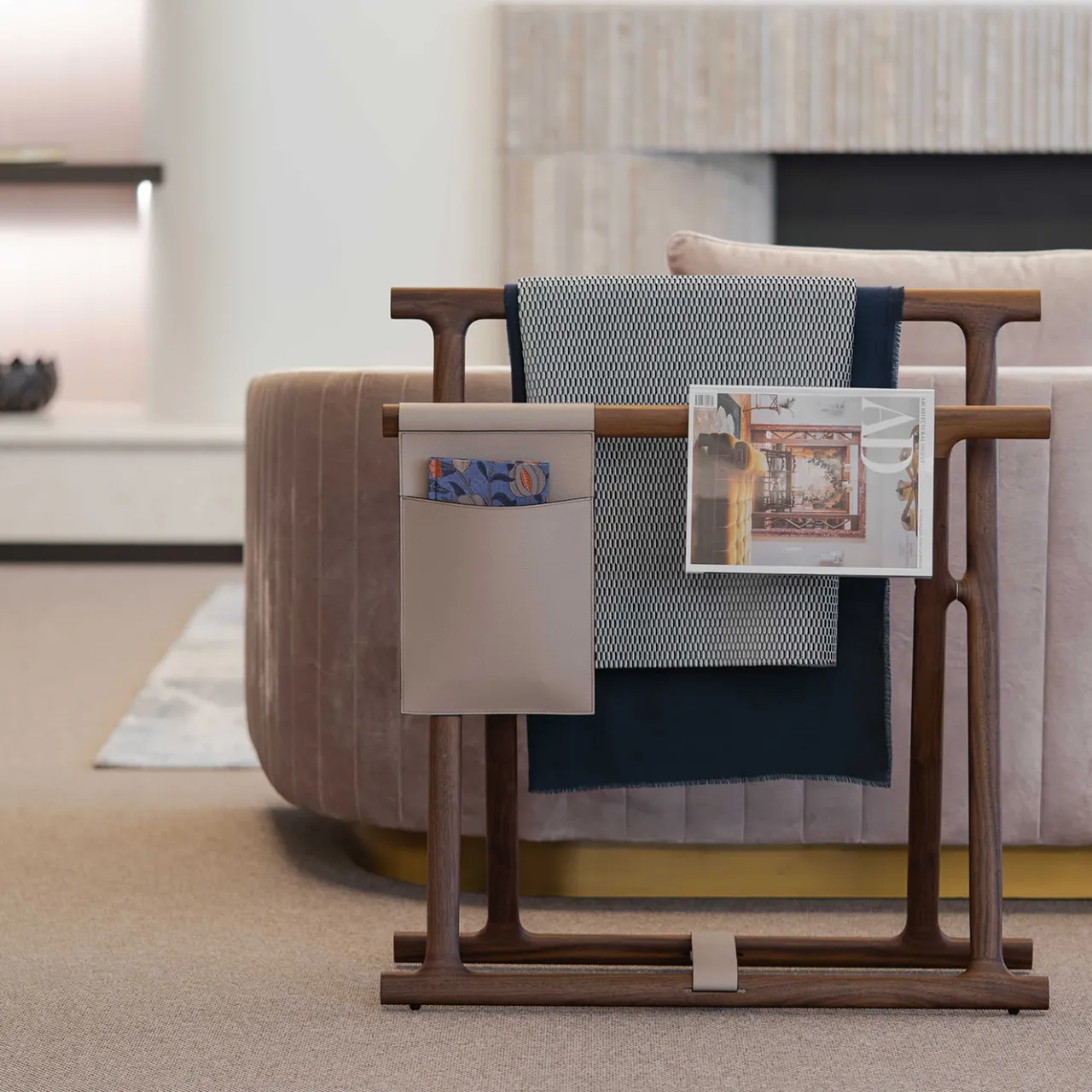 Realizzato con una meticolosa attenzione ai dettagli, il portacoperte Chelsea incarna un’eleganza senza tempo e un design funzionale. Realizzato con il più pregiato legno di noce, la sua struttura robusta trasuda durata e raffinatezza. L’aggiunta di un’elegante tasca in pelle ne esalta l’estetica, offrendo stile e praticità. Con una gamma versatile di tipi e colori di pelle disponibili per la personalizzazione, questo pezzo diventa un elemento di spicco personalizzato in qualsiasi spazio interno.