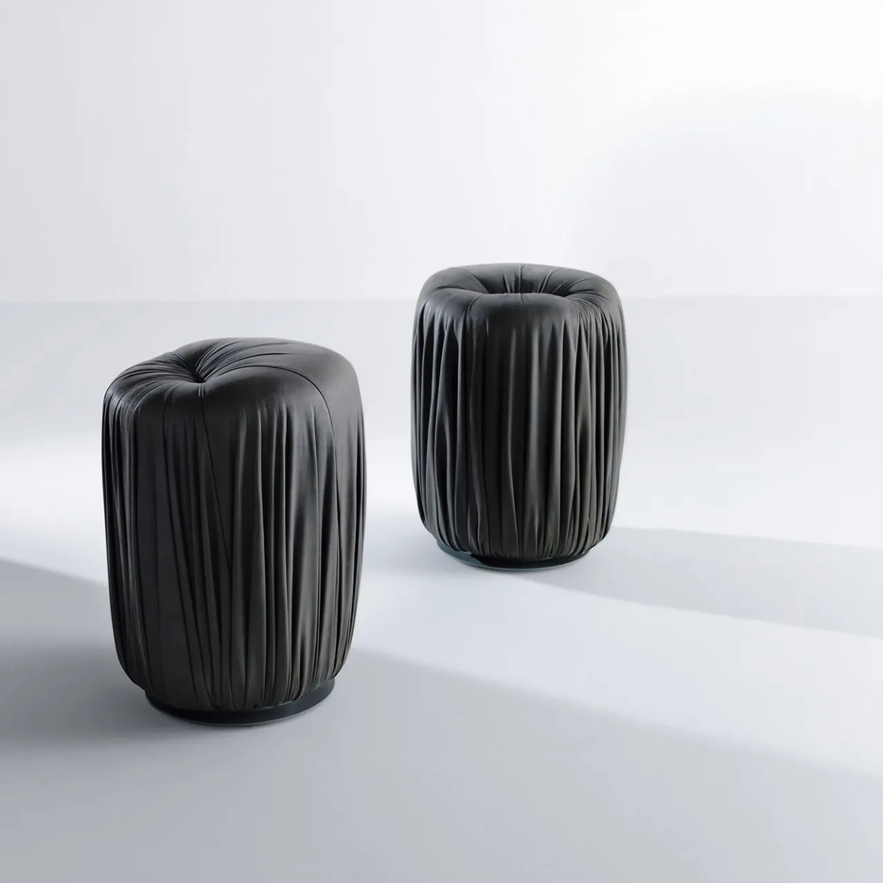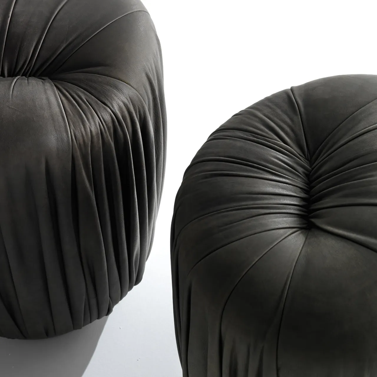 La collezione Drapé è una serie di pouf imbottiti rivestiti in pelle o velluto, con base in metallo. L’esclusiva lavorazione sartoriale di questa serie è immediatamente riconoscibile per la creazione di forme morbide. Disponibile in diverse forme e dimensioni, questo lussuoso pouf rotondo alto è rivestito in pelle grigio topo.