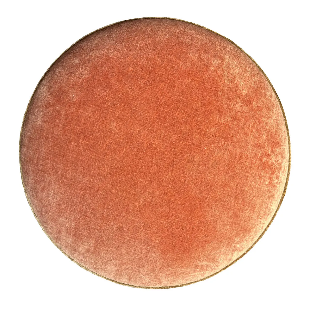 Pouf rivestito in velluto arancione con struttura interna in legno. Non può essere aperto.