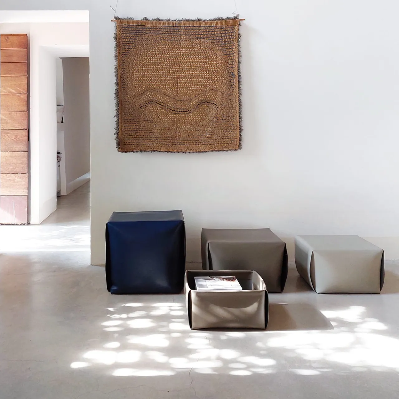 Un accessorio favoloso ed elegante, realizzato con una pelle cucita e poi piegata come un origami per dare forma a questo pouf unico, che si adatta a qualsiasi arredamento moderno della vostra casa. Questo complemento super cool e confortevole per la vostra area di seduta preferita è visibile qui in grigio Cemento ed è disponibile anche in altri colori.