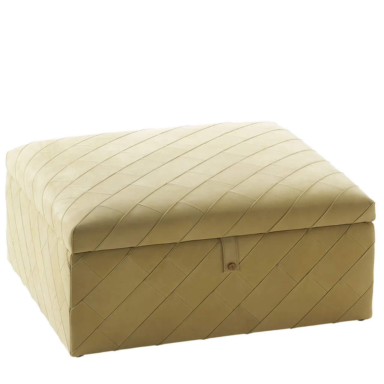 Utilizzato come pouf morbido e confortevole o come capiente e pratico contenitore, questo raffinato design appartiene alla serie di pouf e panche della collezione Studio Interior. Presenta una struttura artigianale in legno massiccio rivestita in pelle verde di prima qualità e arricchita da un bottone e da un logo in ottone, a testimonianza del perfetto connubio tra stile moderno e tradizione artigianale.